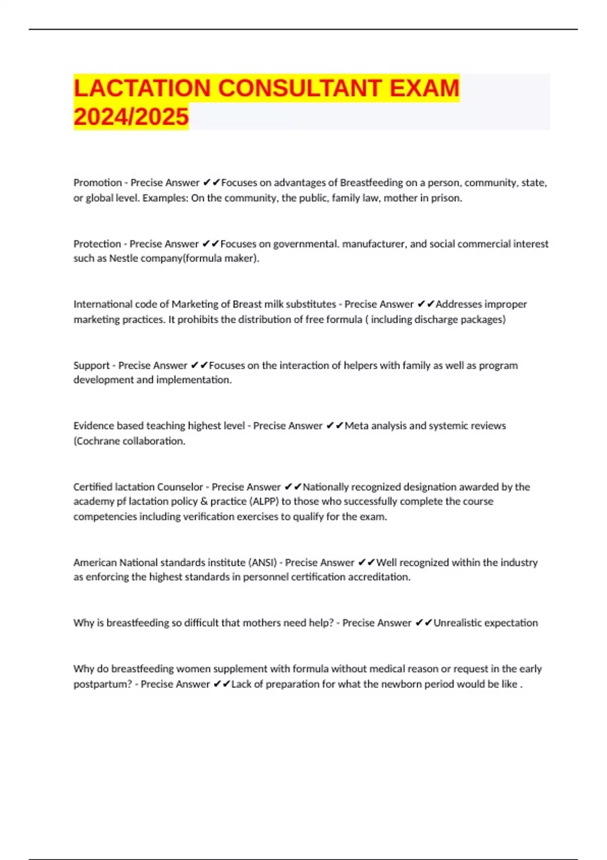 Certified lactation Counselor - Precise Answer ✔✔Nationally recognized designation awarded by the