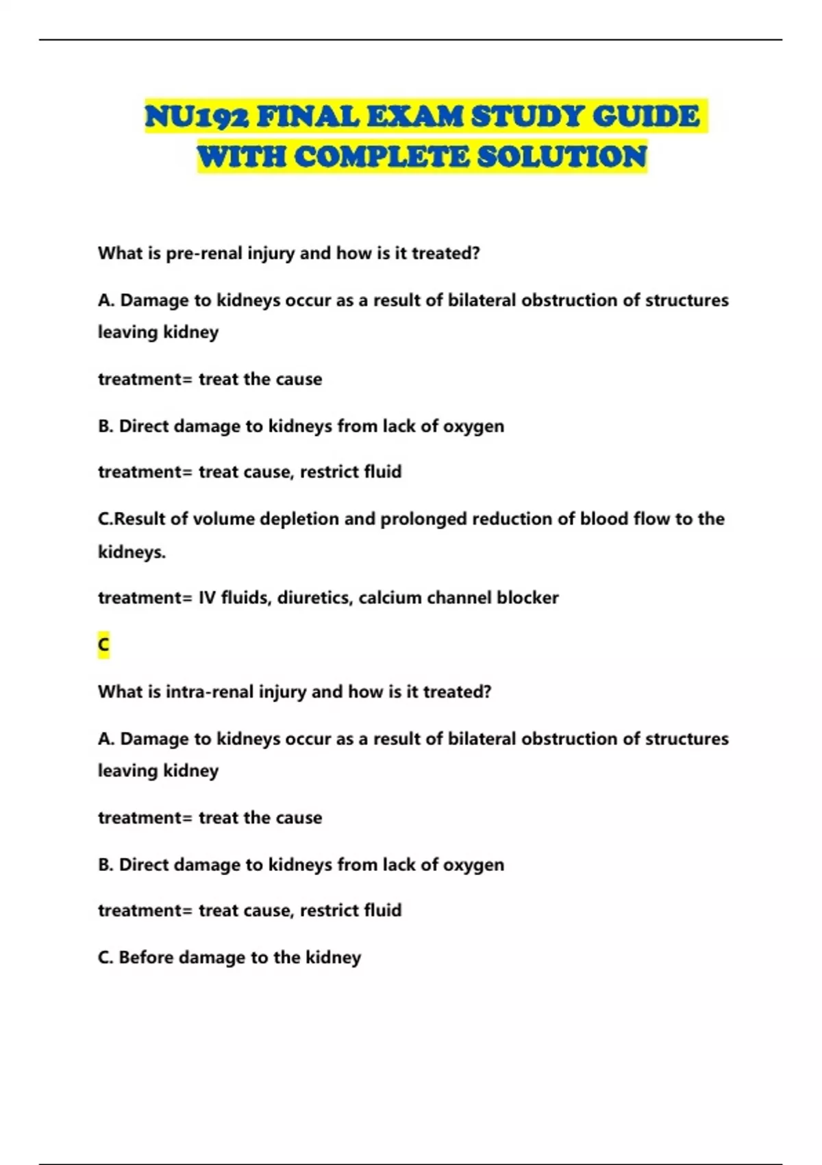 NU192 FINAL EXAM STUDY GUIDE WITH COMPLETE SOLUTION