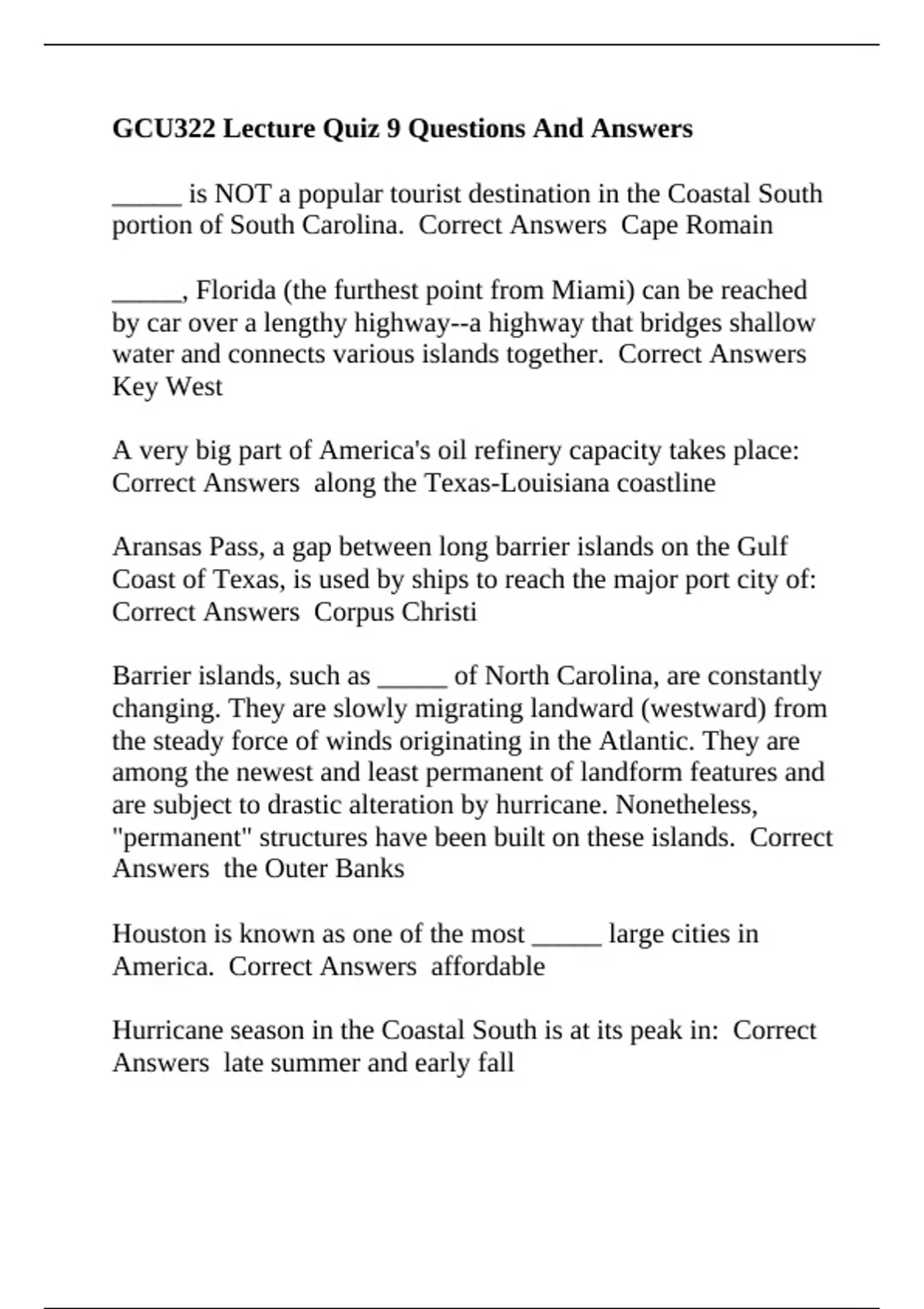 Arizona State University GCU322 Lecture Quiz 9 Questions And Answers