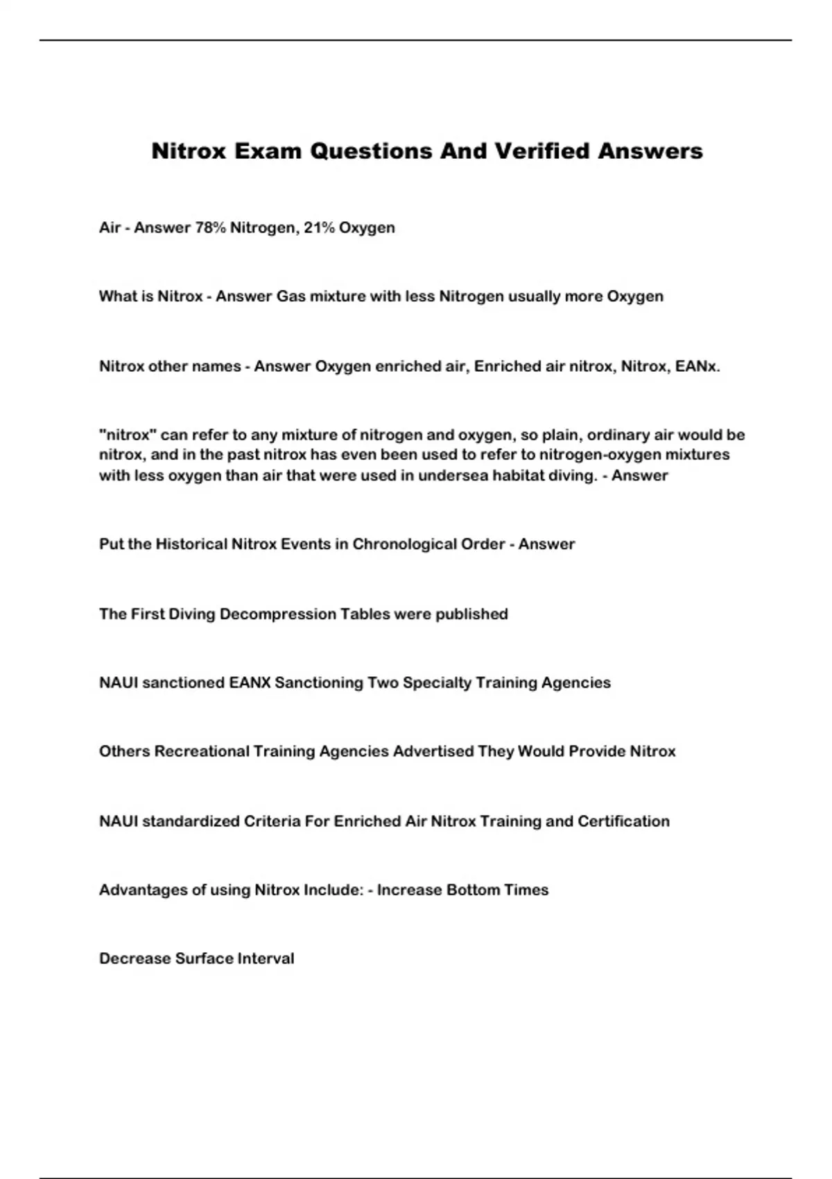 Nitrox Exam Questions And Verified Answers