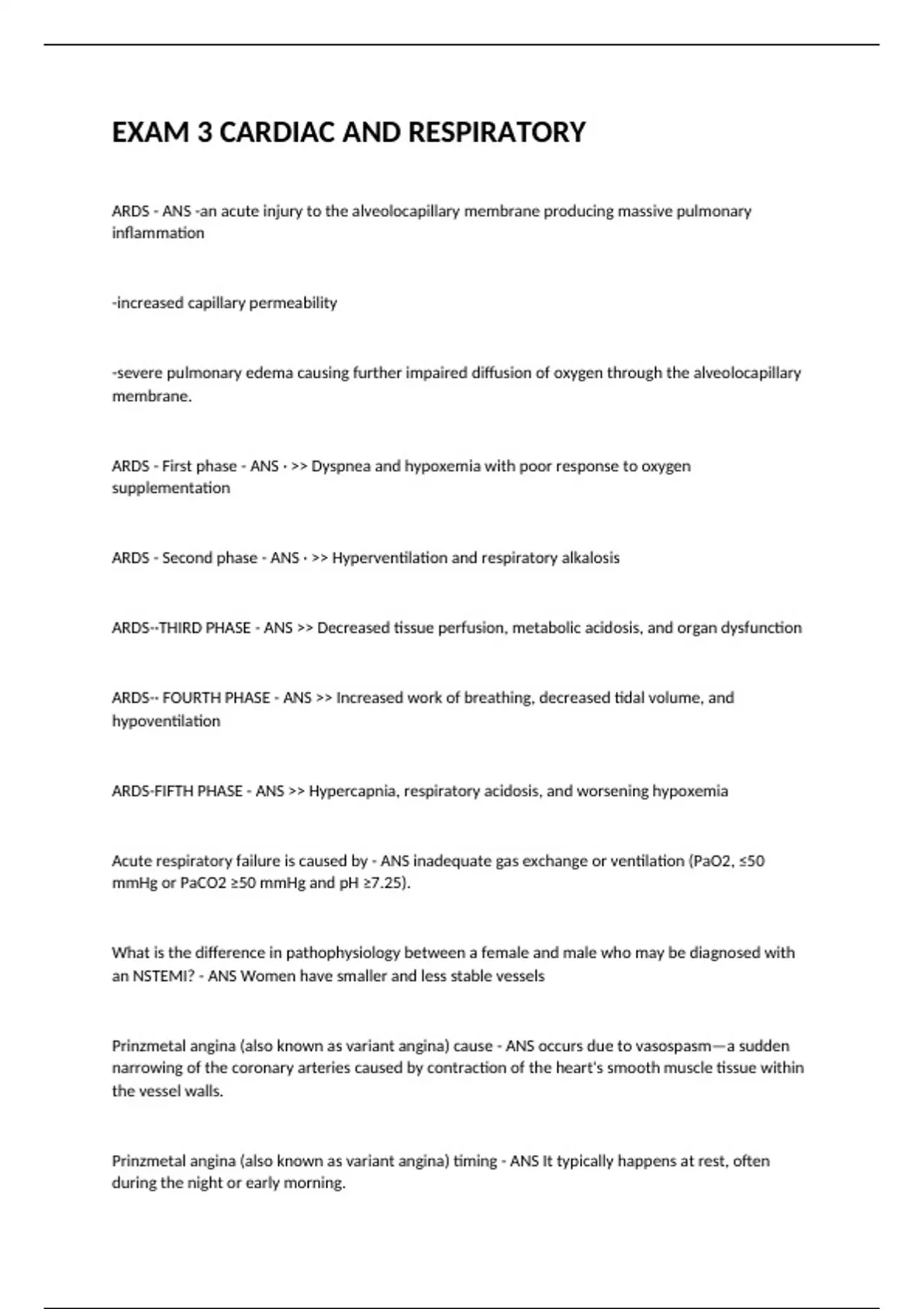ARDS - ANS -an acute injury to the alveolocapillary membrane producing massive pulmonary