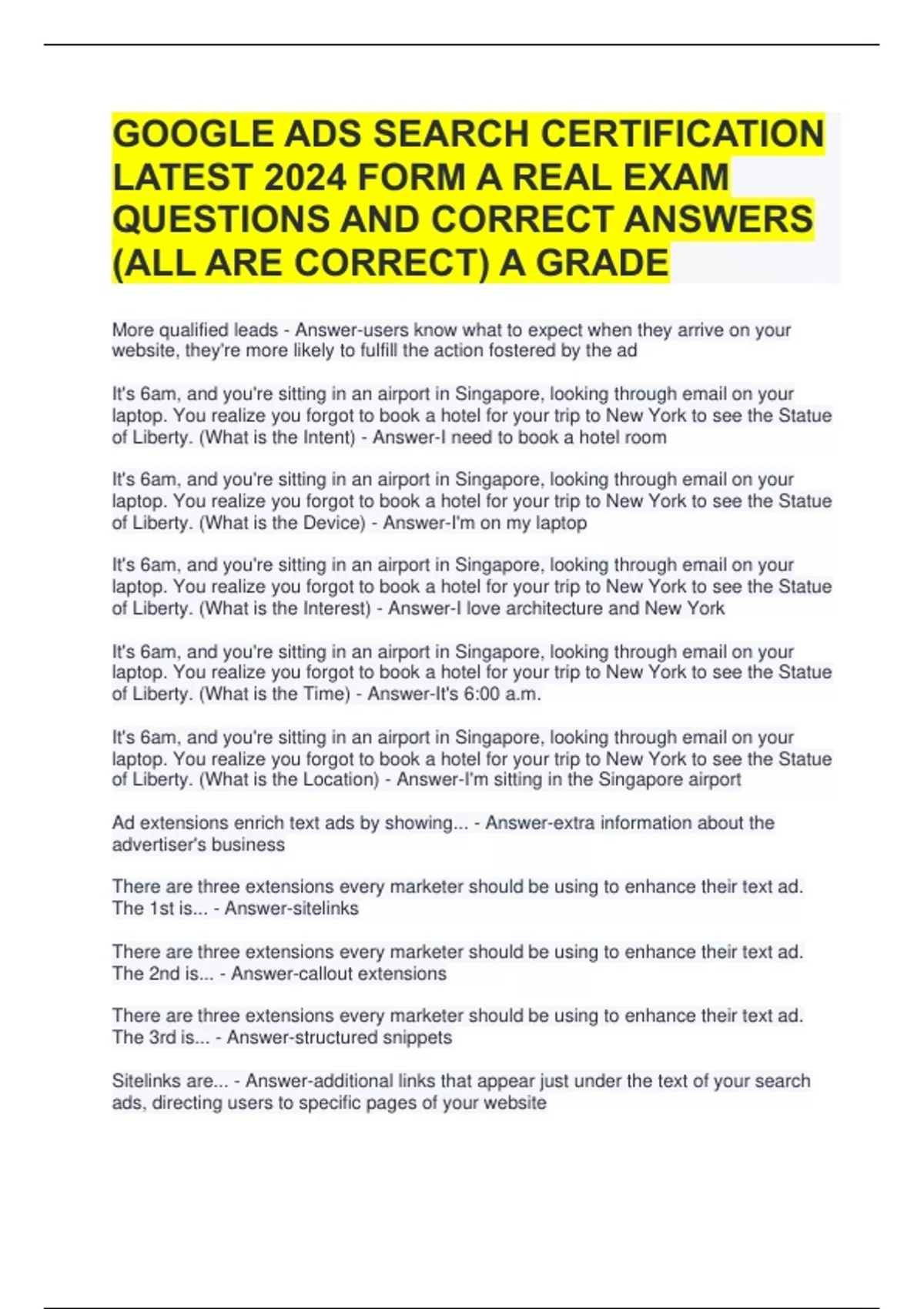 QUESTIONS AND CORRECT ANSWERS