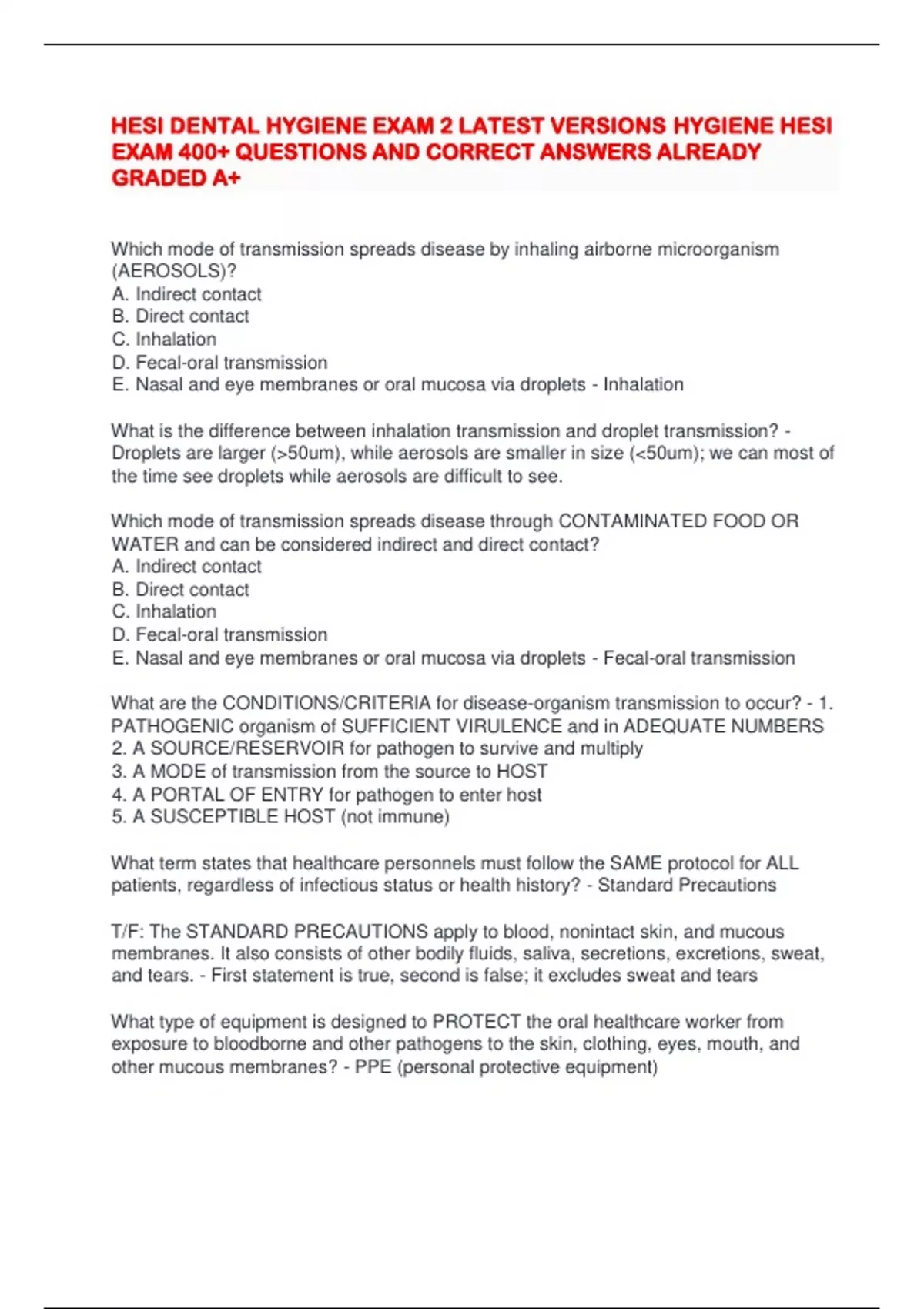 HESI DENTAL HYGIENE EXAM 2 LATEST VERSIONS HYGIENE HESI EXAM 400+ QUESTIONS AND CORRECT ANSWERS ALREADY GRADED A+