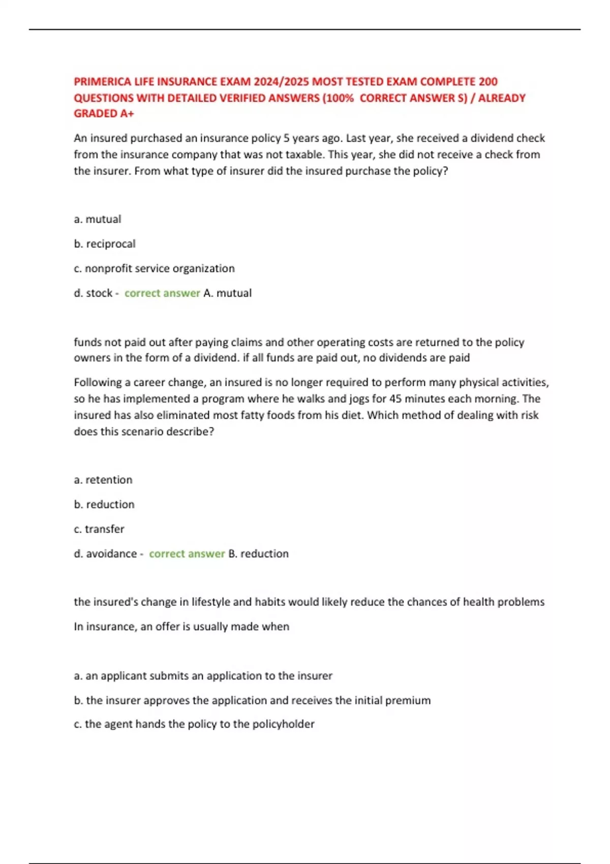 d. avoidance - correct answer B. reduction