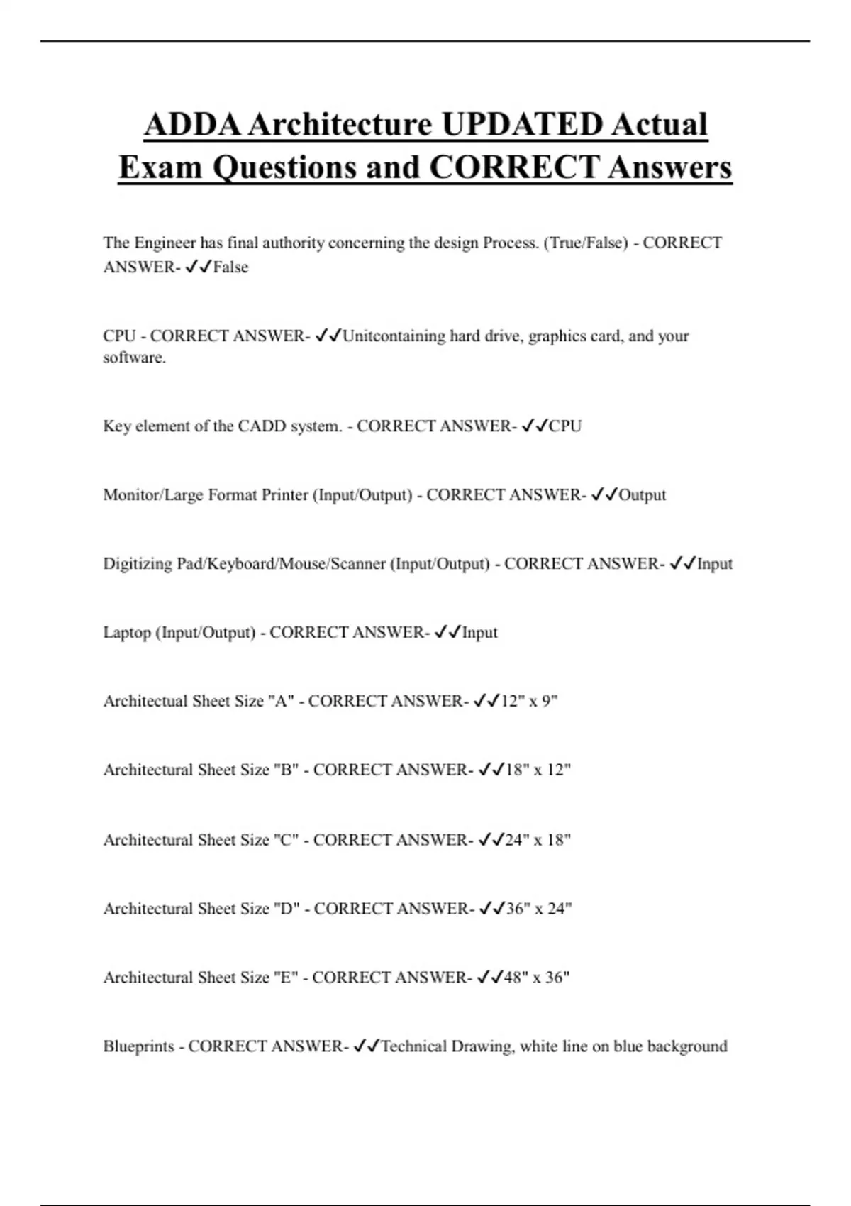 Architectural Sheet Size "B" - CORRECT ANSWER- ✔✔18" x 12"