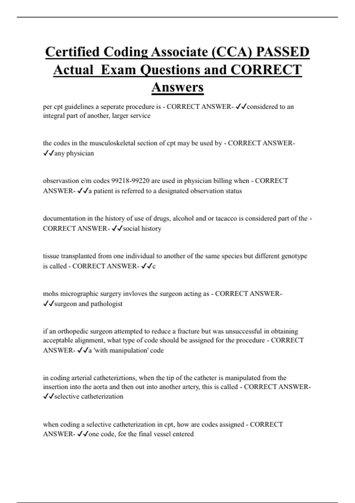 Certified Coding Associate (CCA) PASSED Actual Exam Questions and CORRECT Answers