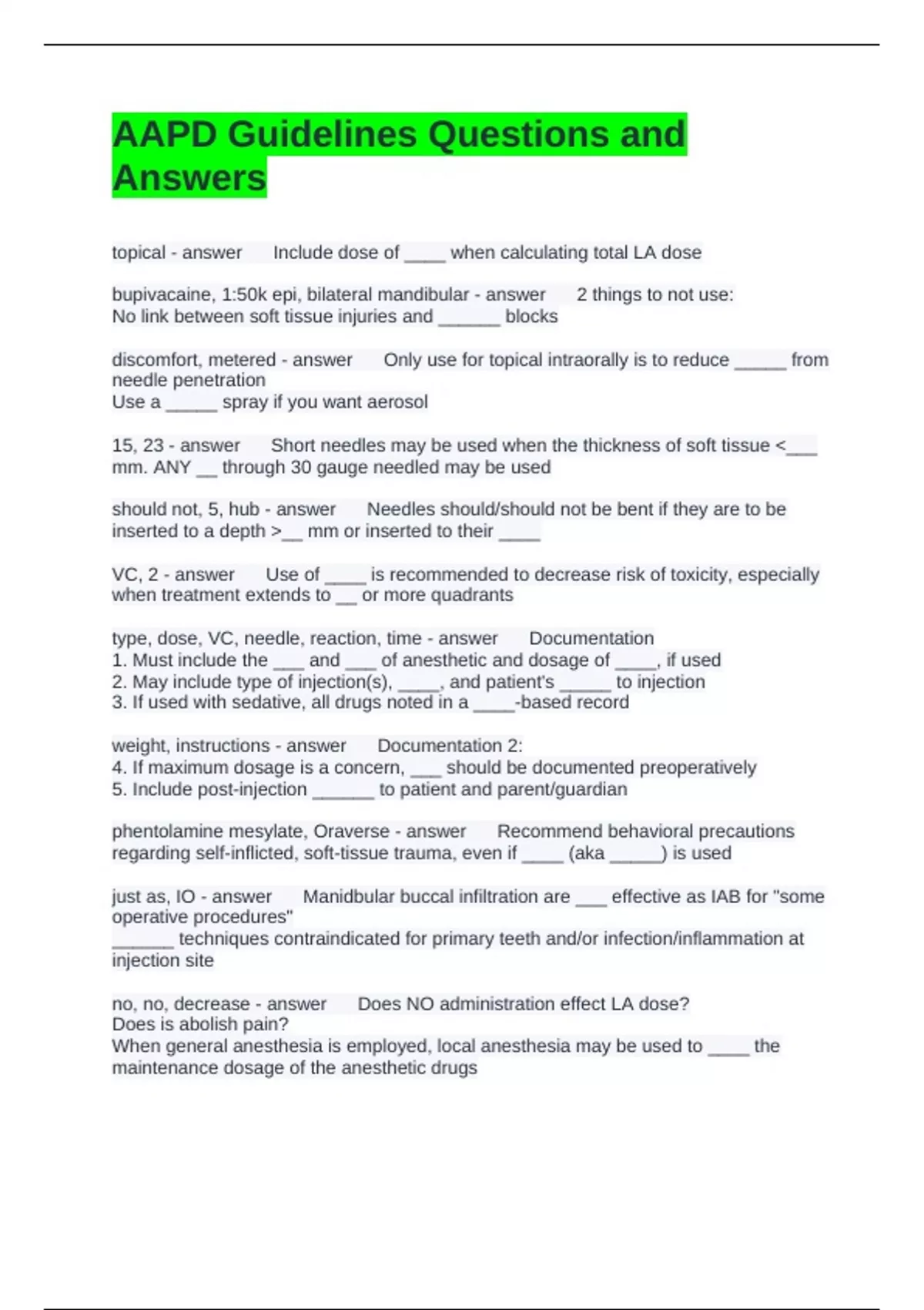 type, dose, VC, needle, reaction, time - answer Documentation