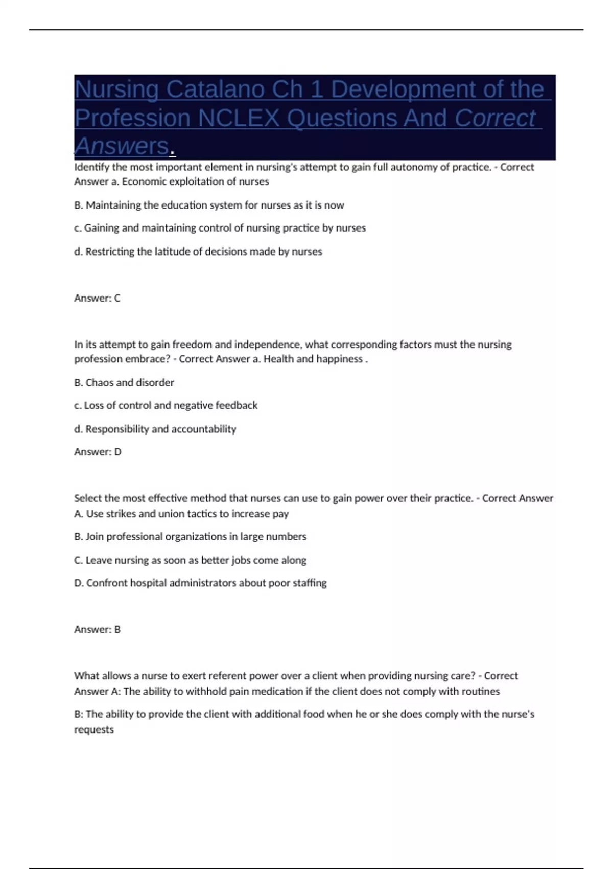 Select the most effective method that nurses can use to gain power over their practice. - Correct Answer