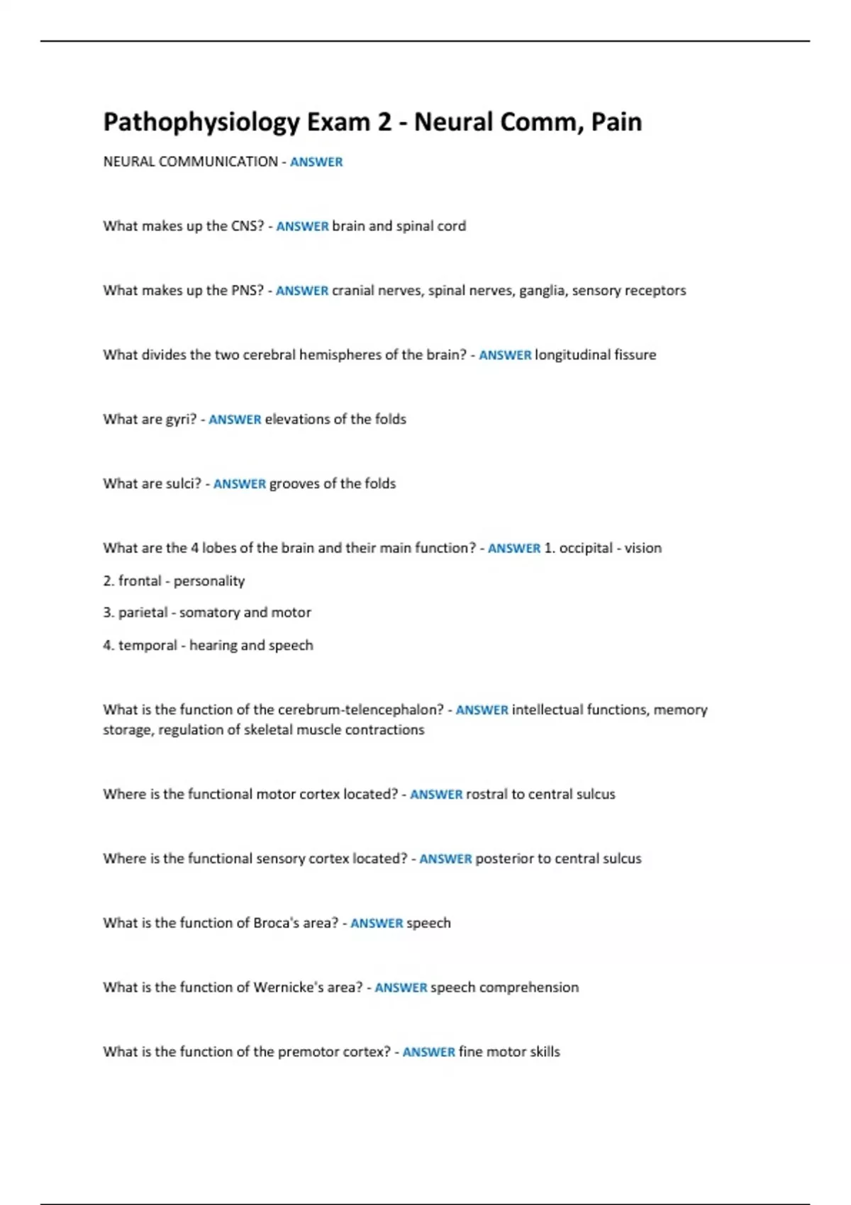 What are the 4 lobes of the brain and their main function? - ANSWER 1. occipital - vision