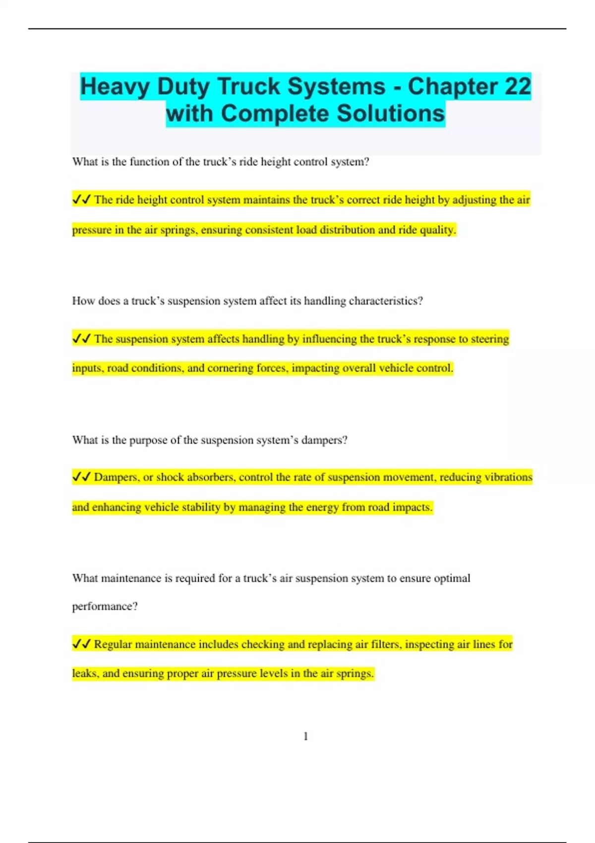 ✔✔ The suspension system affects handling by influencing the truck’s response to steering