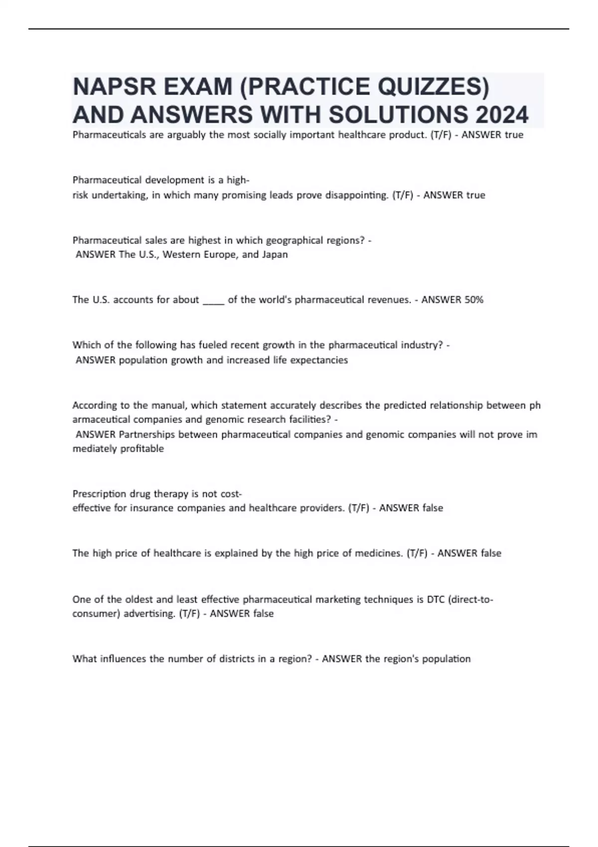 NAPSR EXAM (PRACTICE QUIZZES) AND ANSWERS WITH SOLUTIONS 2024