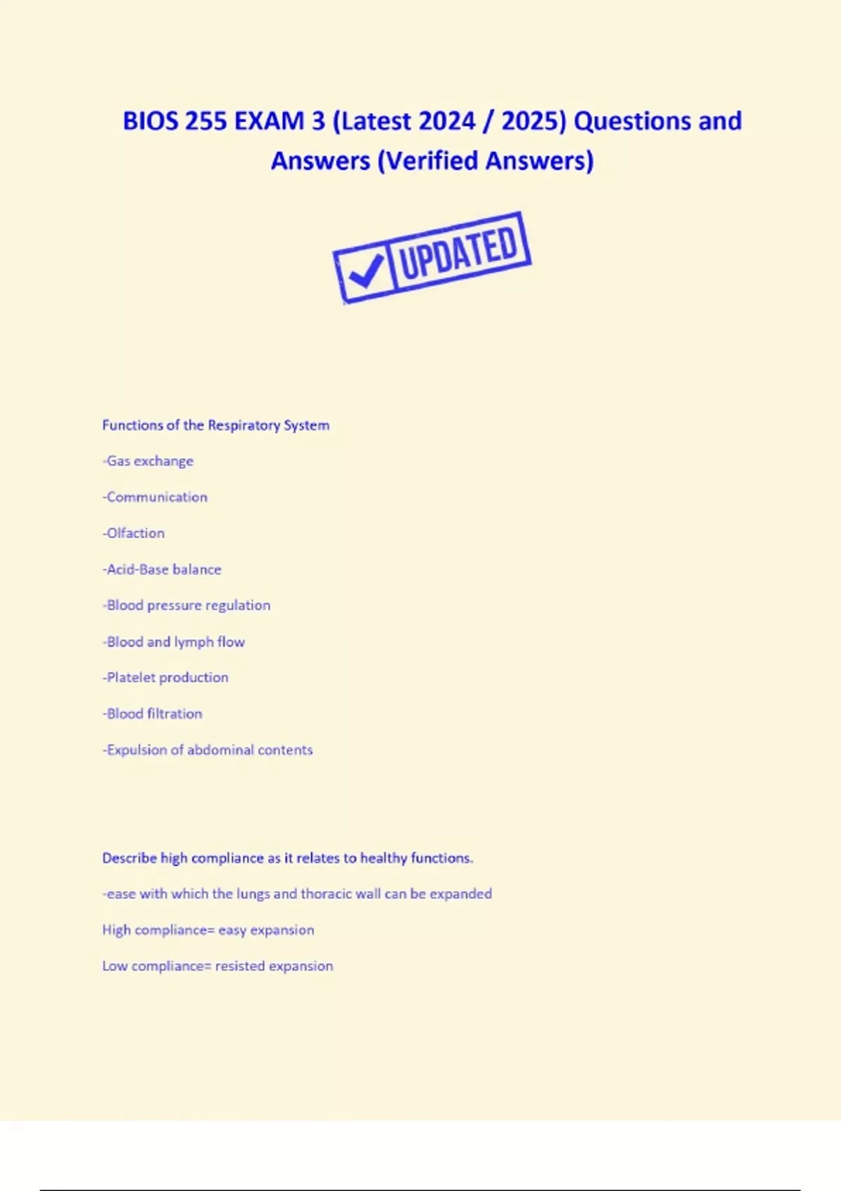 BIOS 255 EXAM 3 (Latest 2024 / 2025) Questions and Answers (Verified Answers)