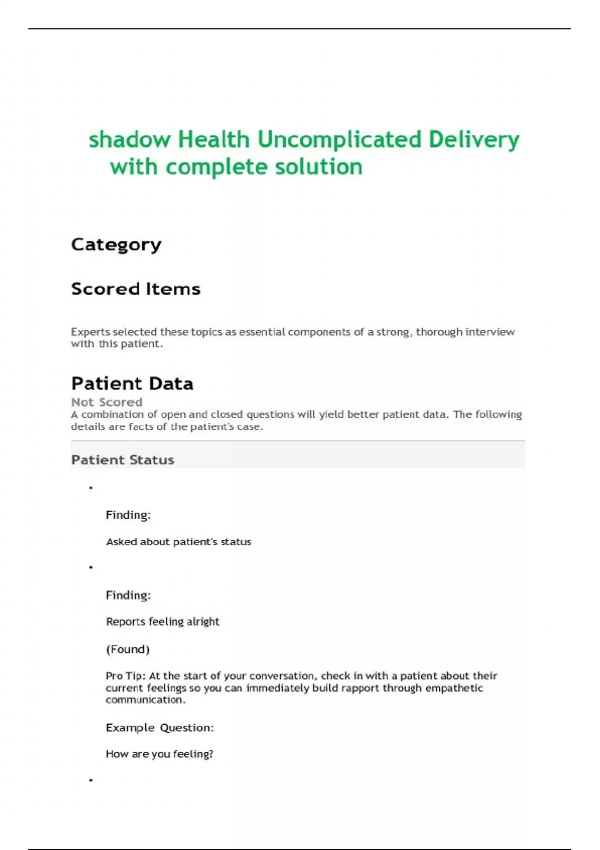 shadow Health Uncomplicated Delivery with complete solution shadow Health Uncomplicated Delivery with complete solution shadow Health Uncomplicated Delivery with complete solution