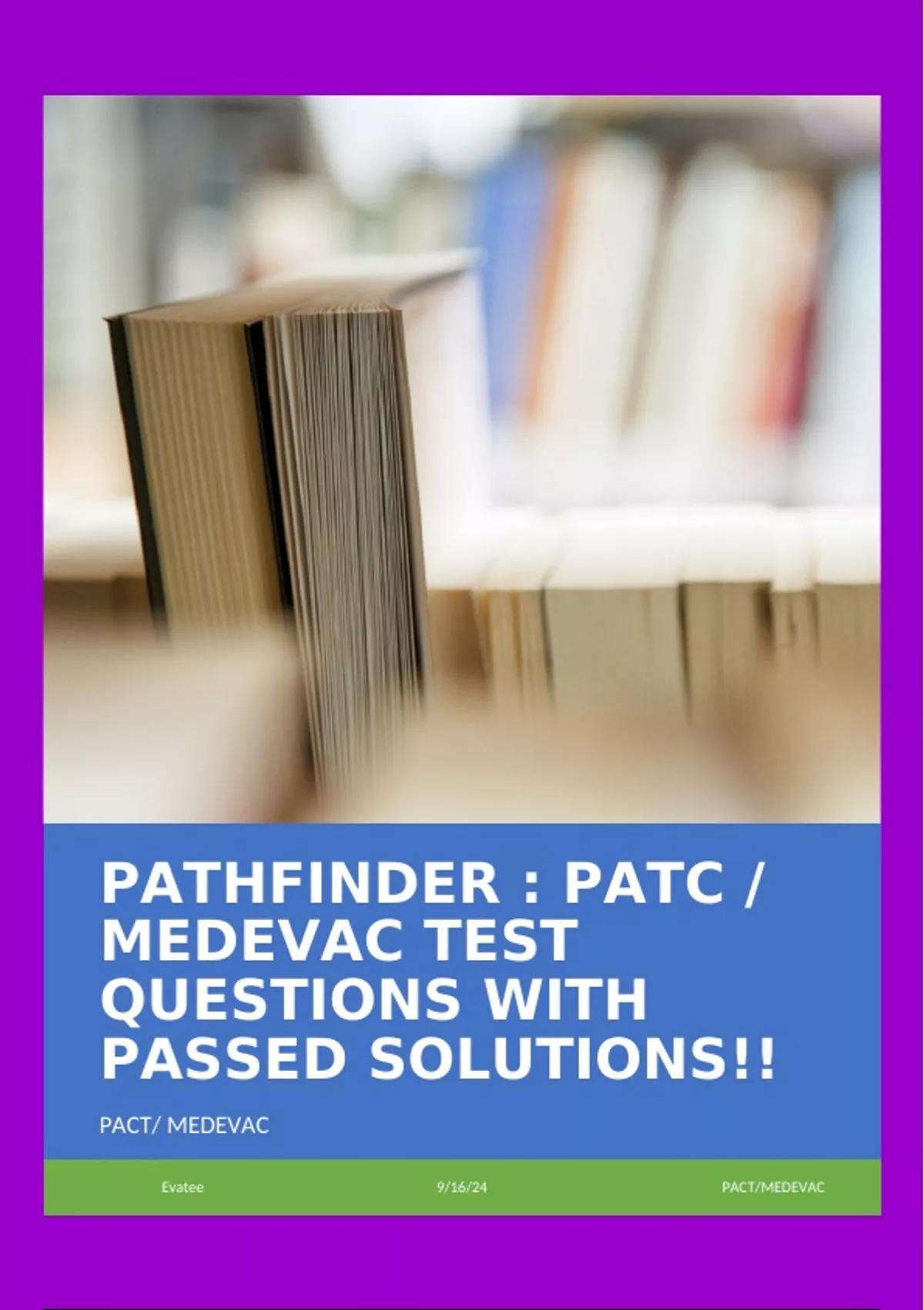 PATHFINDER : PATC / MEDEVAC TEST QUESTIONS WITH PASSED SOLUTIONS!!