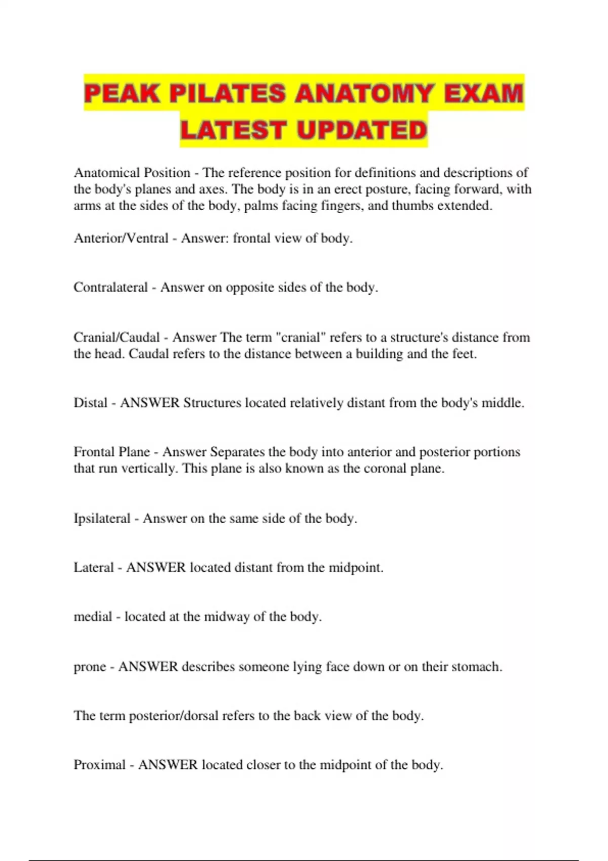 PEAK PILATES ANATOMY EXAM LATEST UPDATED...