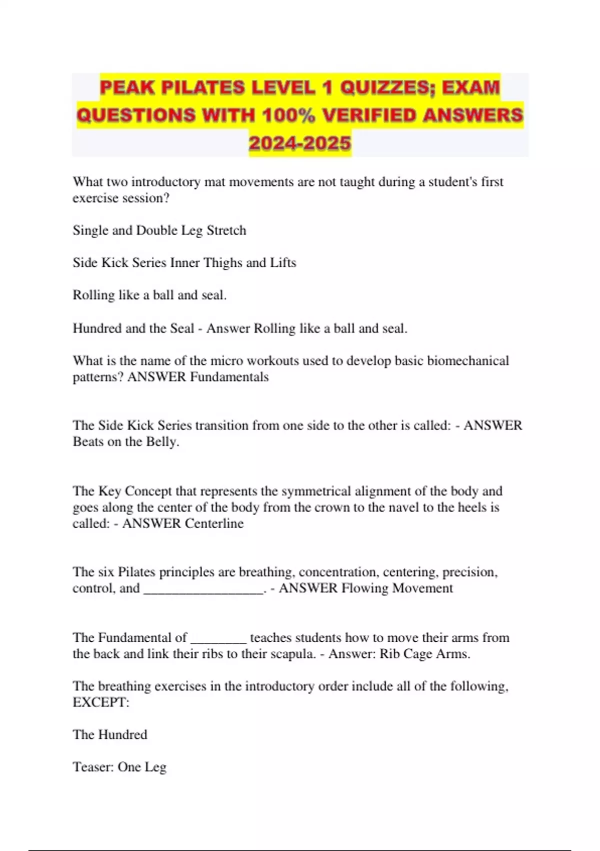What foundation did Joseph Pilates build his work on? - ANSWER Animals