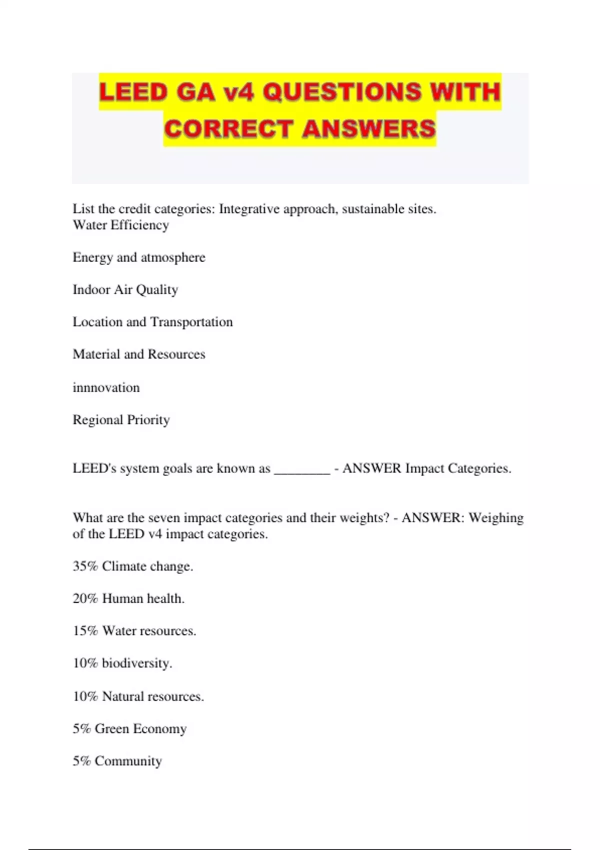 LEED's system goals are known as ________ - ANSWER Impact Categories.