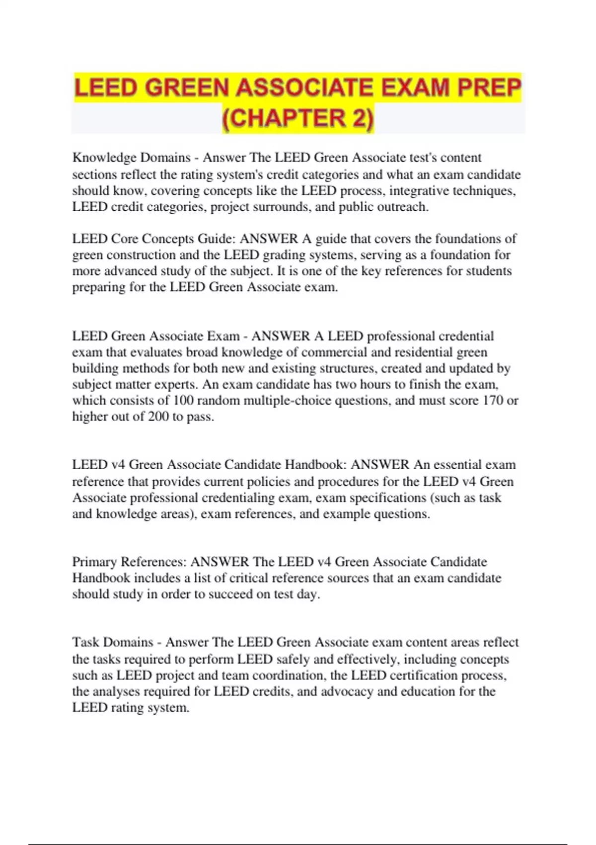 LEED v4 Green Associate Candidate Handbook: ANSWER An essential exam