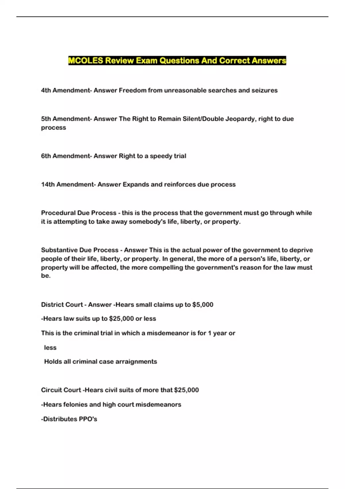 MCOLES Review Exam Questions And Correct Answers...