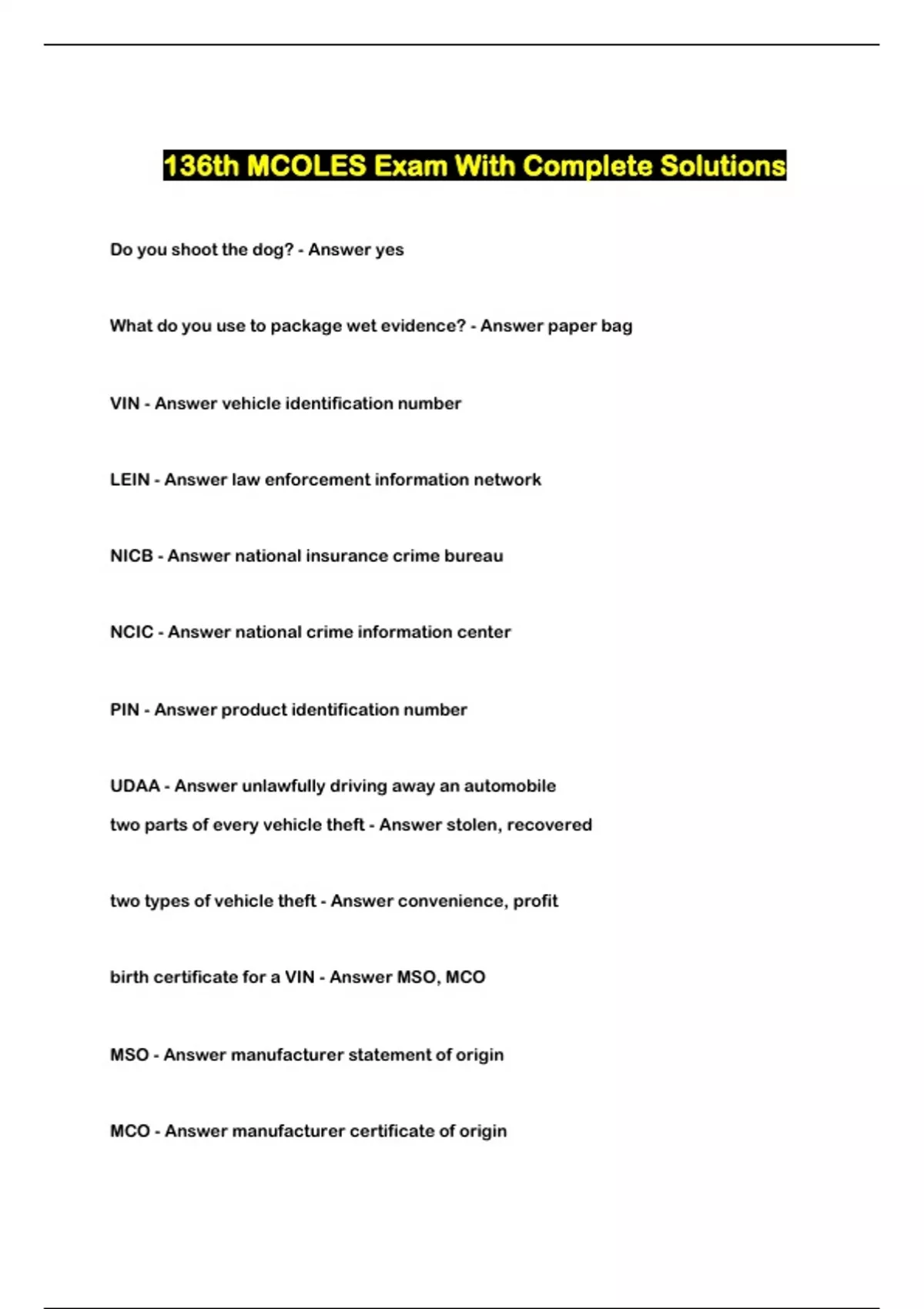 to retrieve a LEIN/NCIC stolen vehicle hit you must at minimum query. - Answer the last