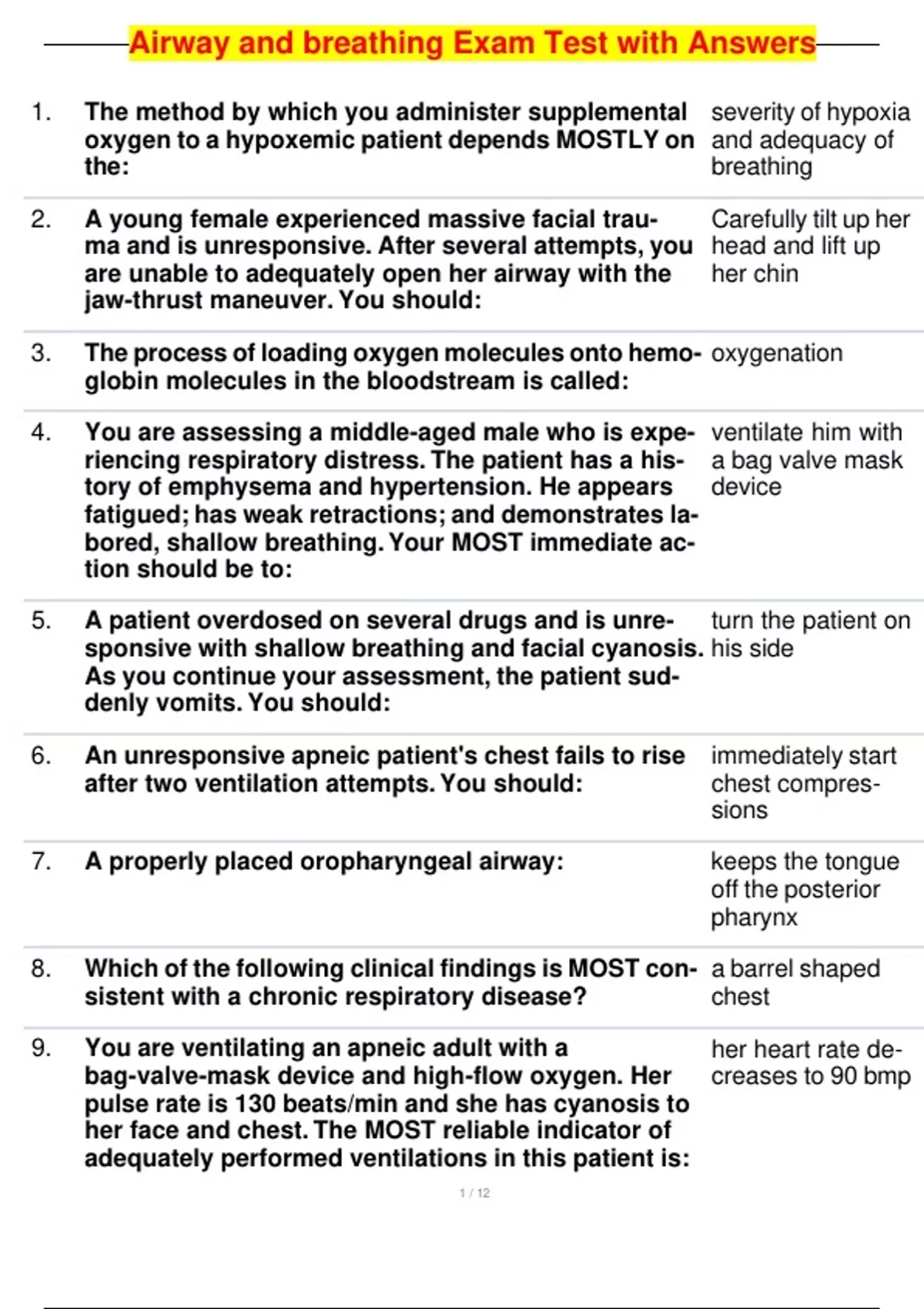 4. You are assessing a middle-aged male who is expe- ventilate him with