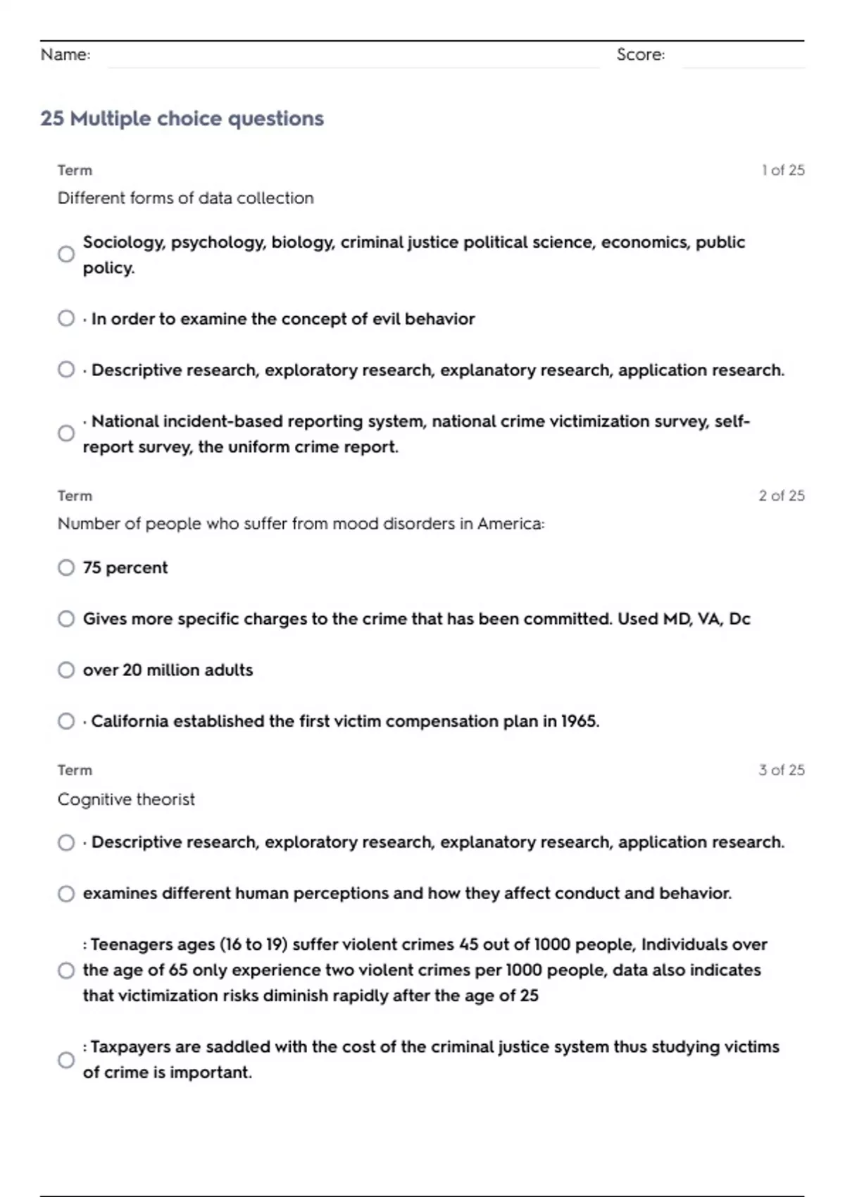 25 Multiple choice questions
