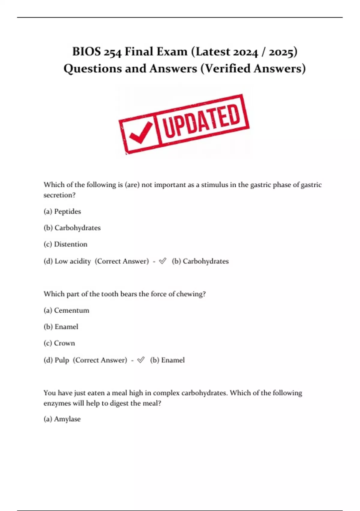 BIOS 254 Final Exam (Latest )