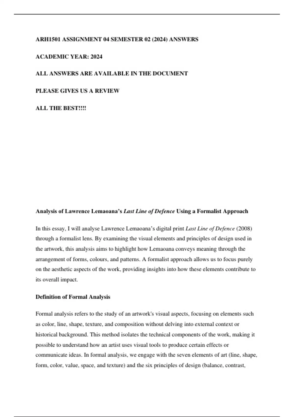 arrangement of forms, colours, and patterns. A formalist approach allows us to focus purely