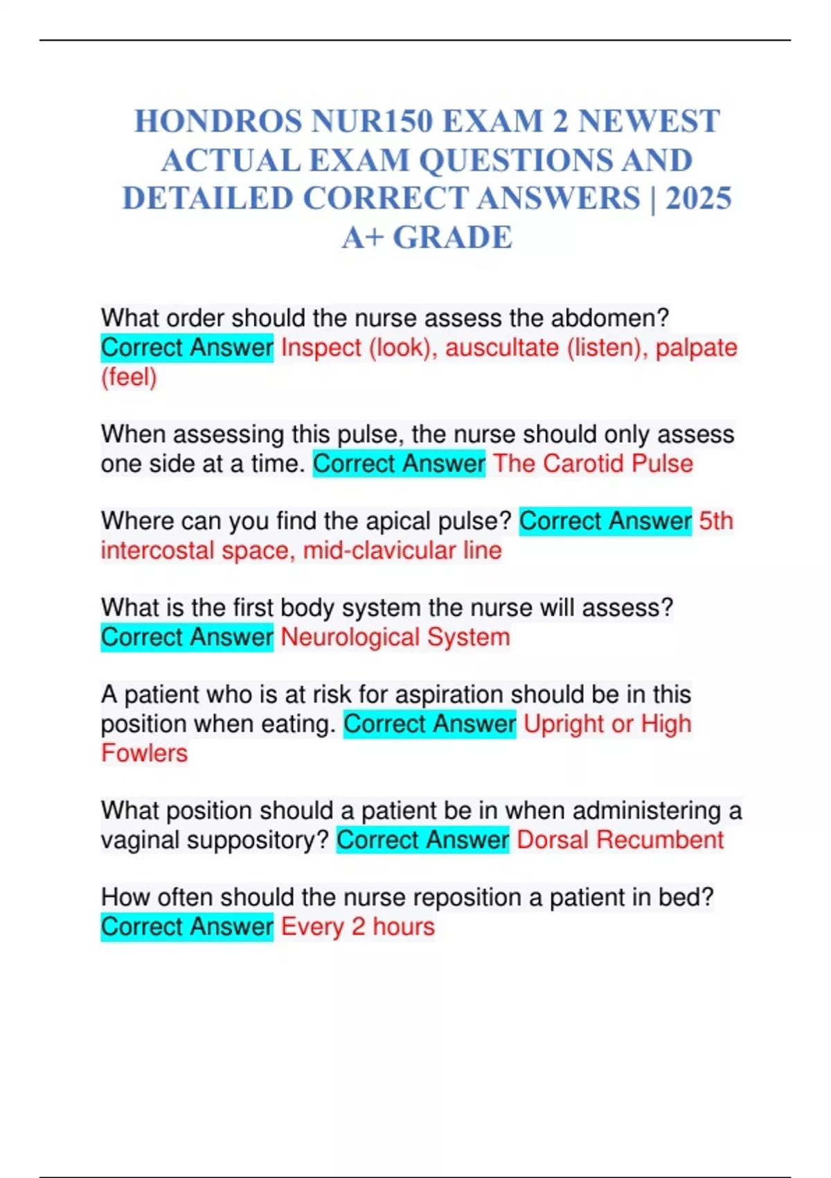 Correct Answer Inspect (look), auscultate (listen), palpate