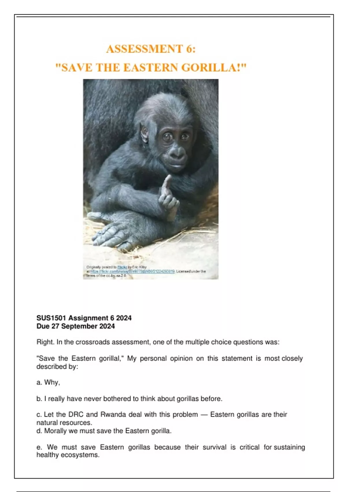 My answer to the question was "e. We must save Eastern gorillas because their survival