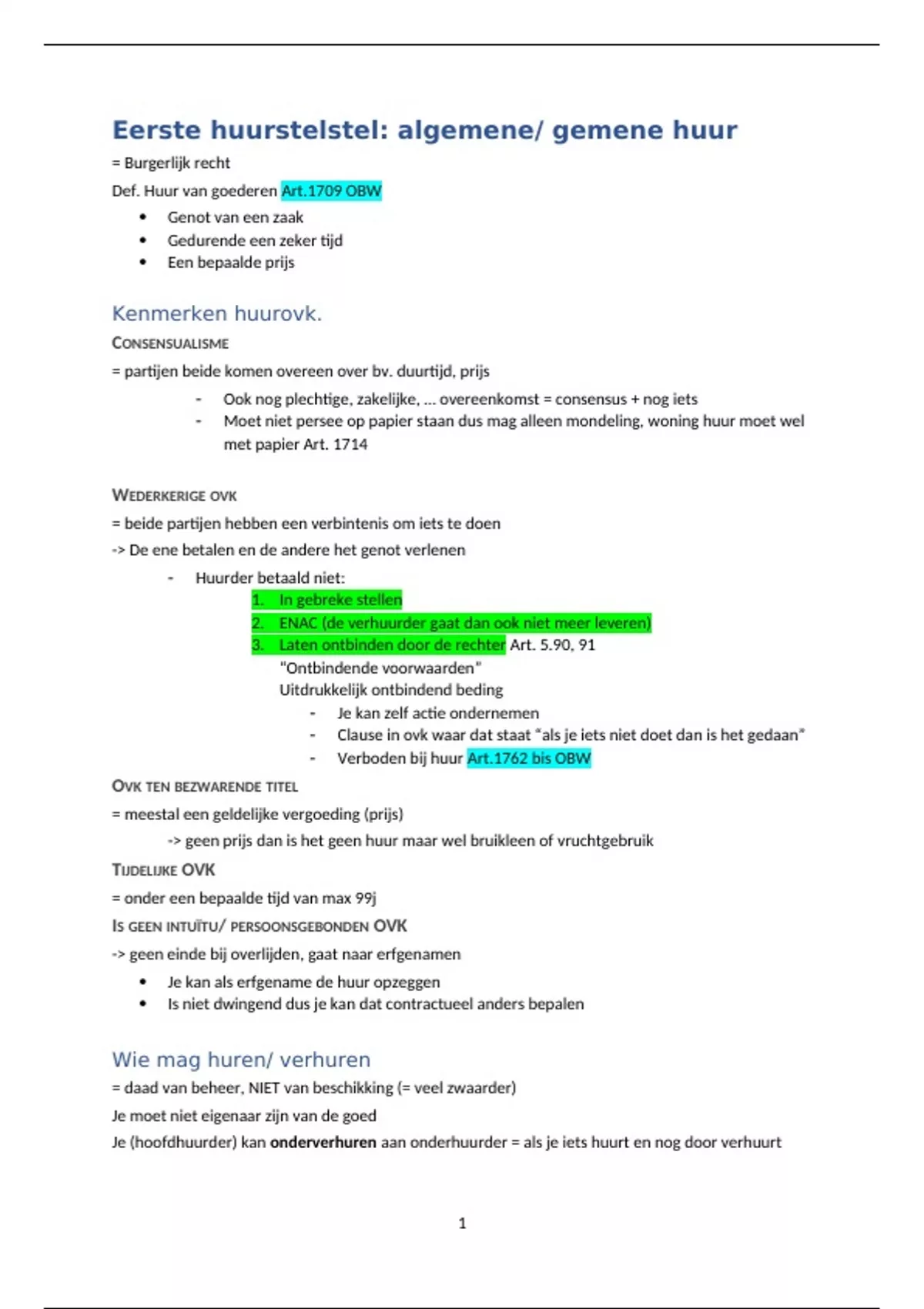 Samenvatting Huurwetgeving