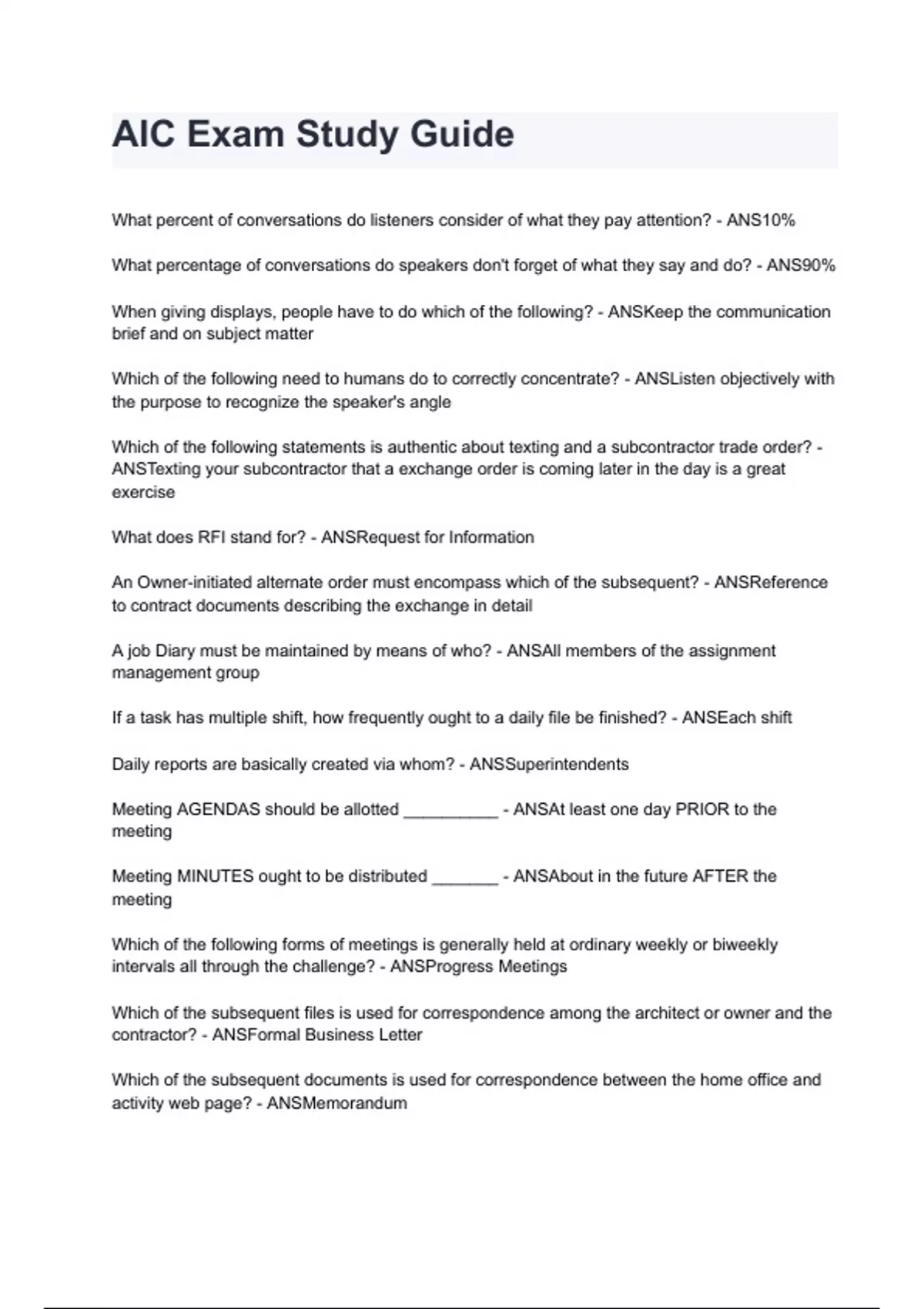 AIC Exam Study Guide