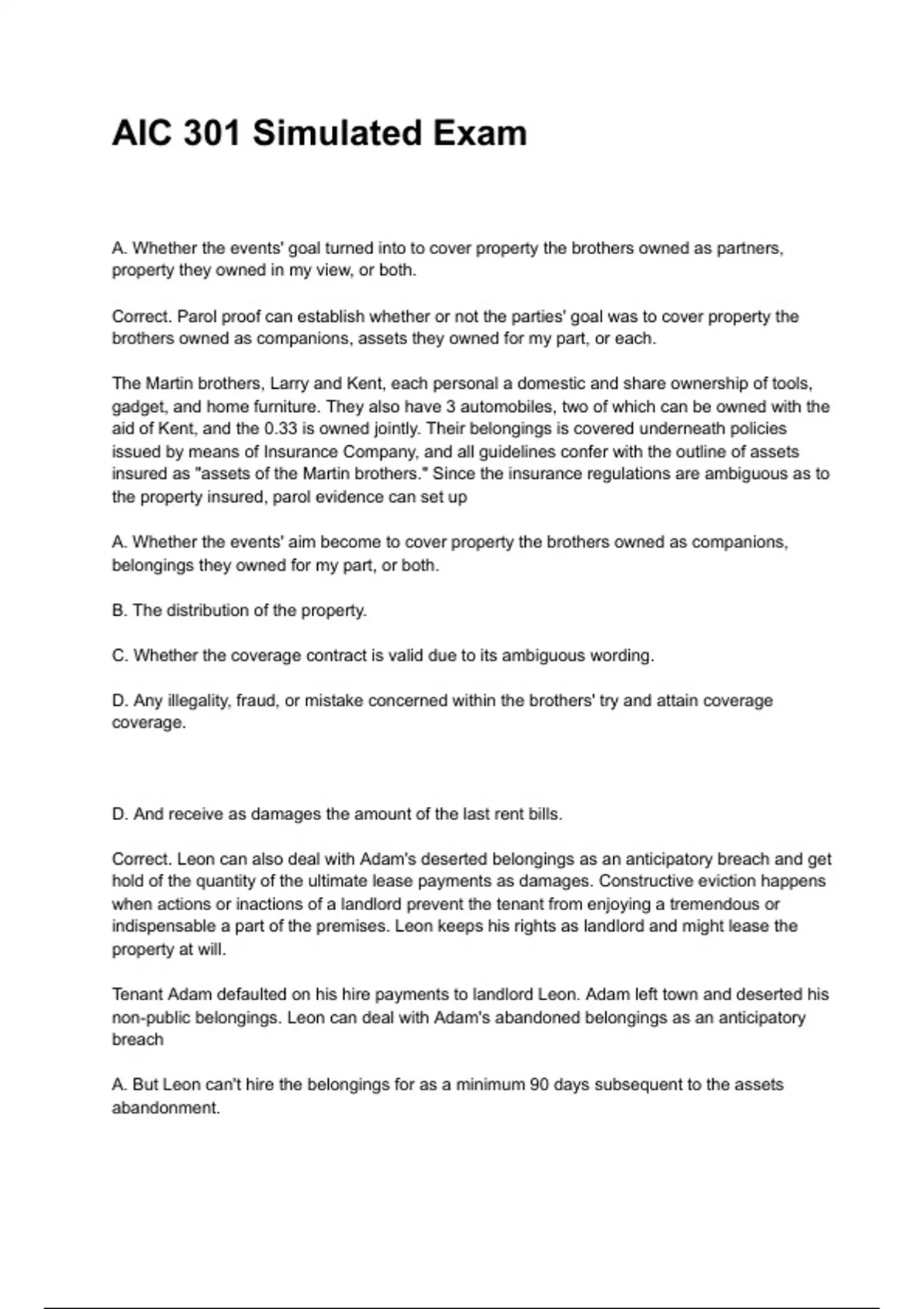 AIC 301 Simulated Exam