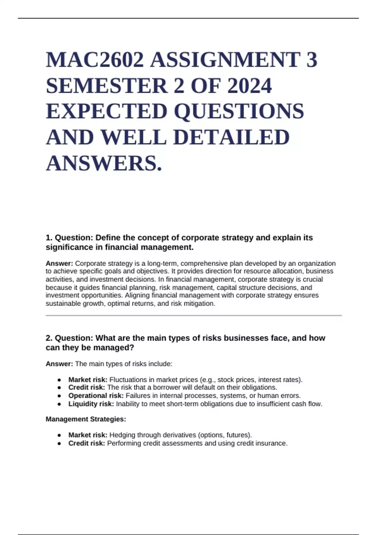MAC2602 ASSIGNMENT 3 SEMESTER 2 OF 2024 EXPECTED QUESTIONS AND WELL DETAILED ANSWERS.