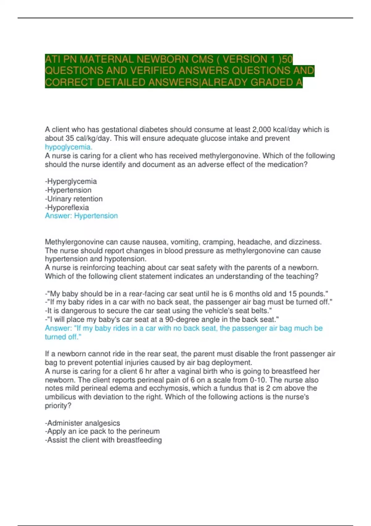 ATI PN MATERNAL NEWBORN CMS ( VERSION 1 )50