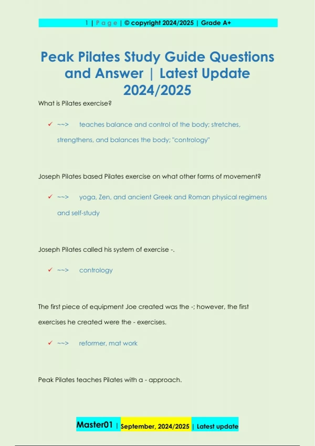 Peak Pilates Study Guide Questions