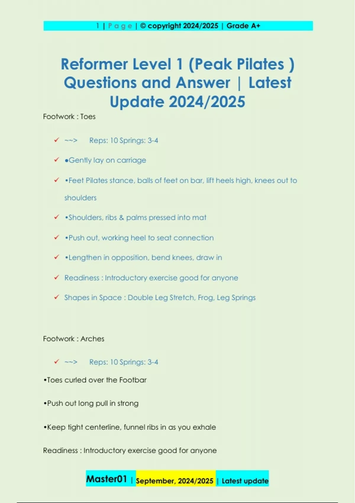 Reformer Level 1 (Peak Pilates ) Questions and Answer | Latest Update 2024/2025