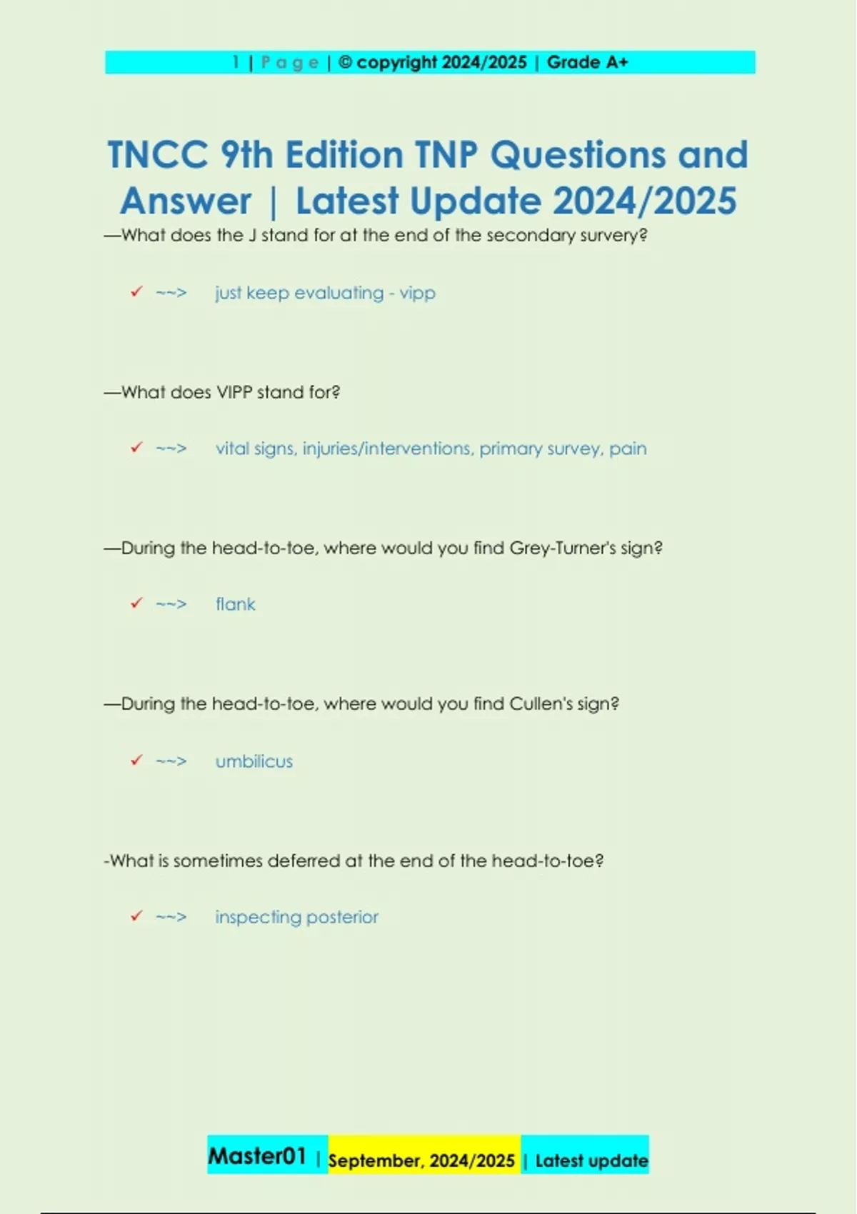 TNCC 9th Edition TNP Questions and