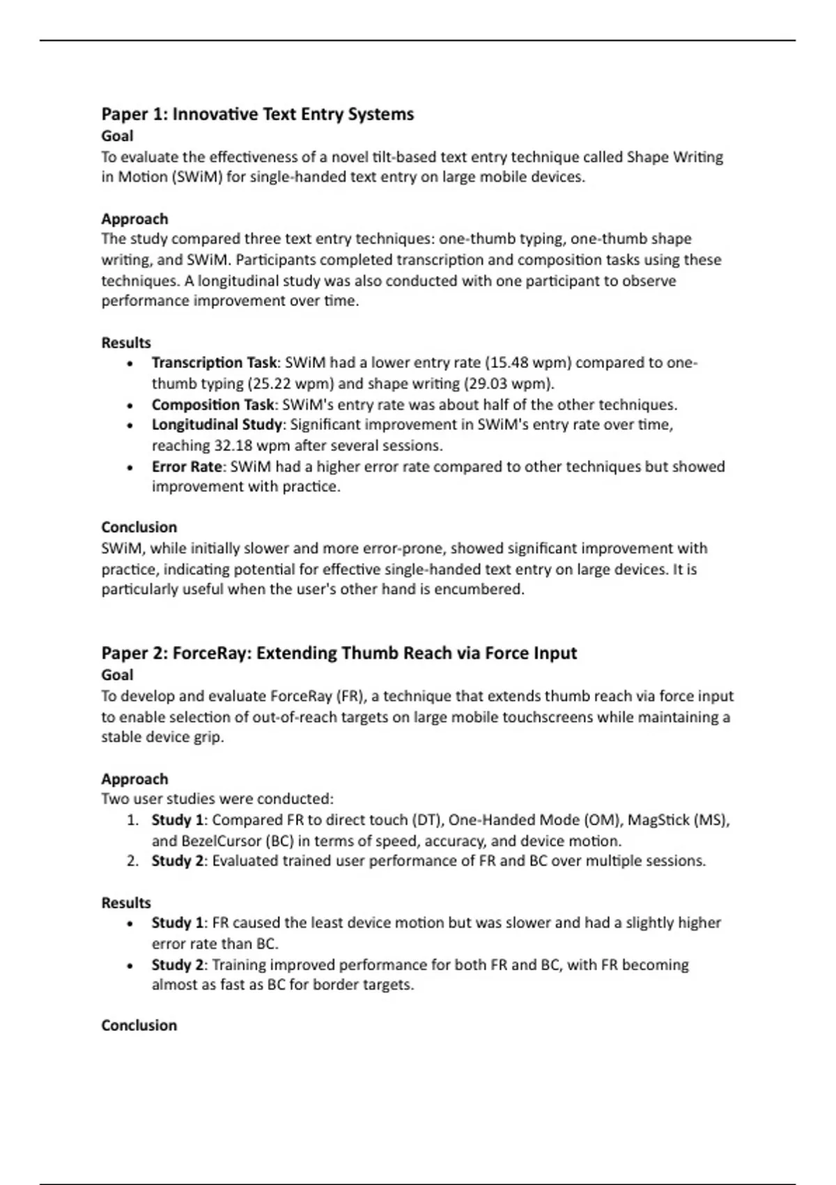 • Study 1: FR caused the least device mo-on but was slower and had a slightly higher