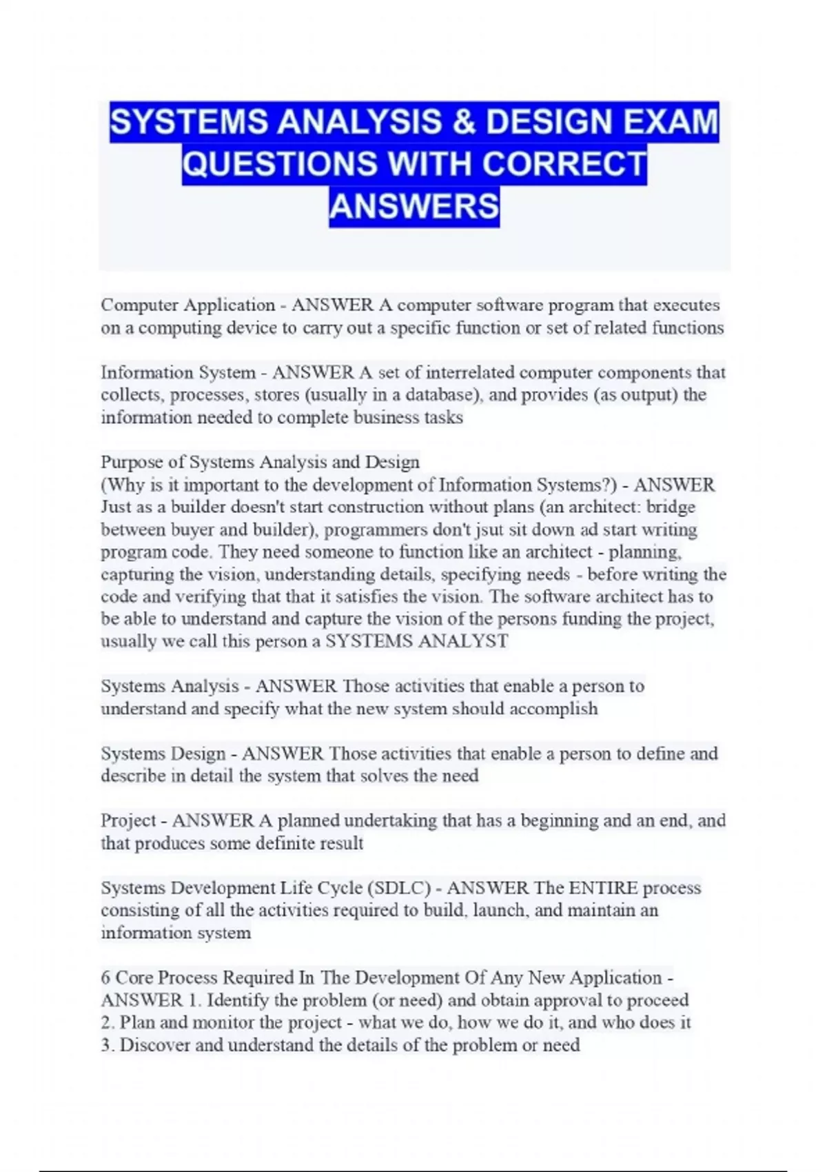 SYSTEMS ANALYSIS & DESIGN EXAM QUESTIONS WITH CORRECT ANSWERS...