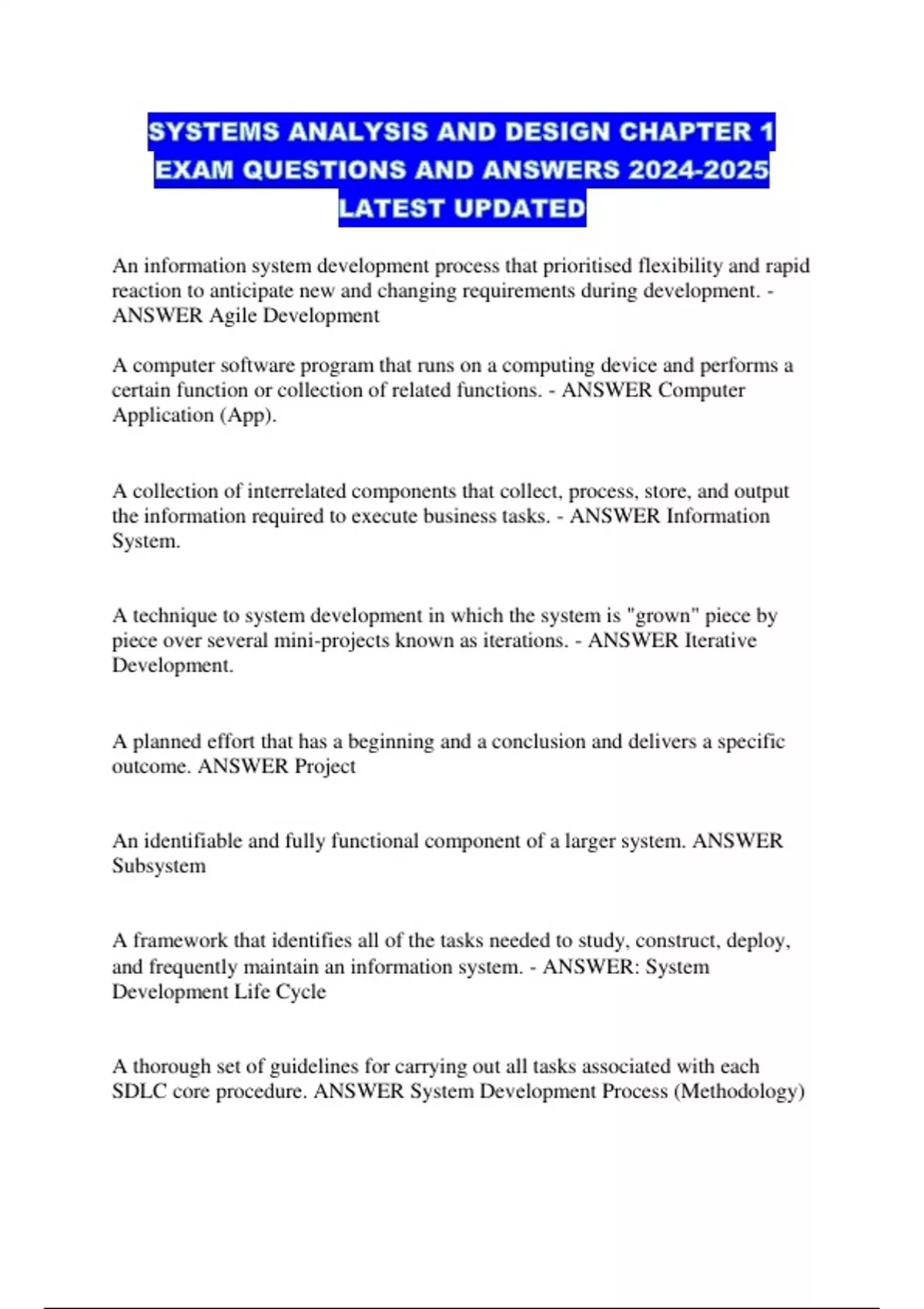 SYSTEMS ANALYSIS AND DESIGN CHAPTER 1 EXAM QUESTIONS AND ANSWERS LATEST UPDATED...