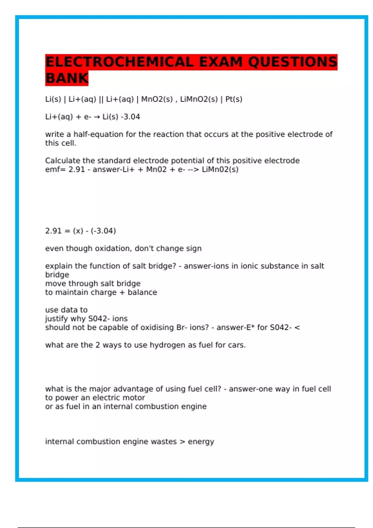 emf= 2.91 - answer-Li+ + Mn02 + e- --> LiMn02(s)