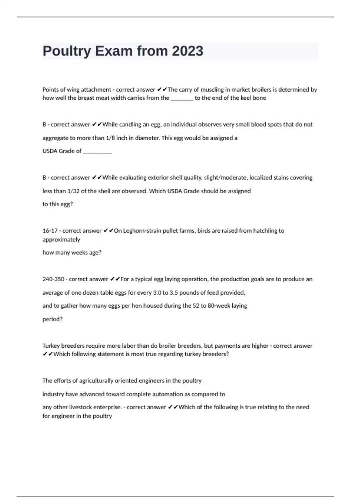 Points of wing attachment - correct answer ✔✔The carry of muscling in market broilers is determined by