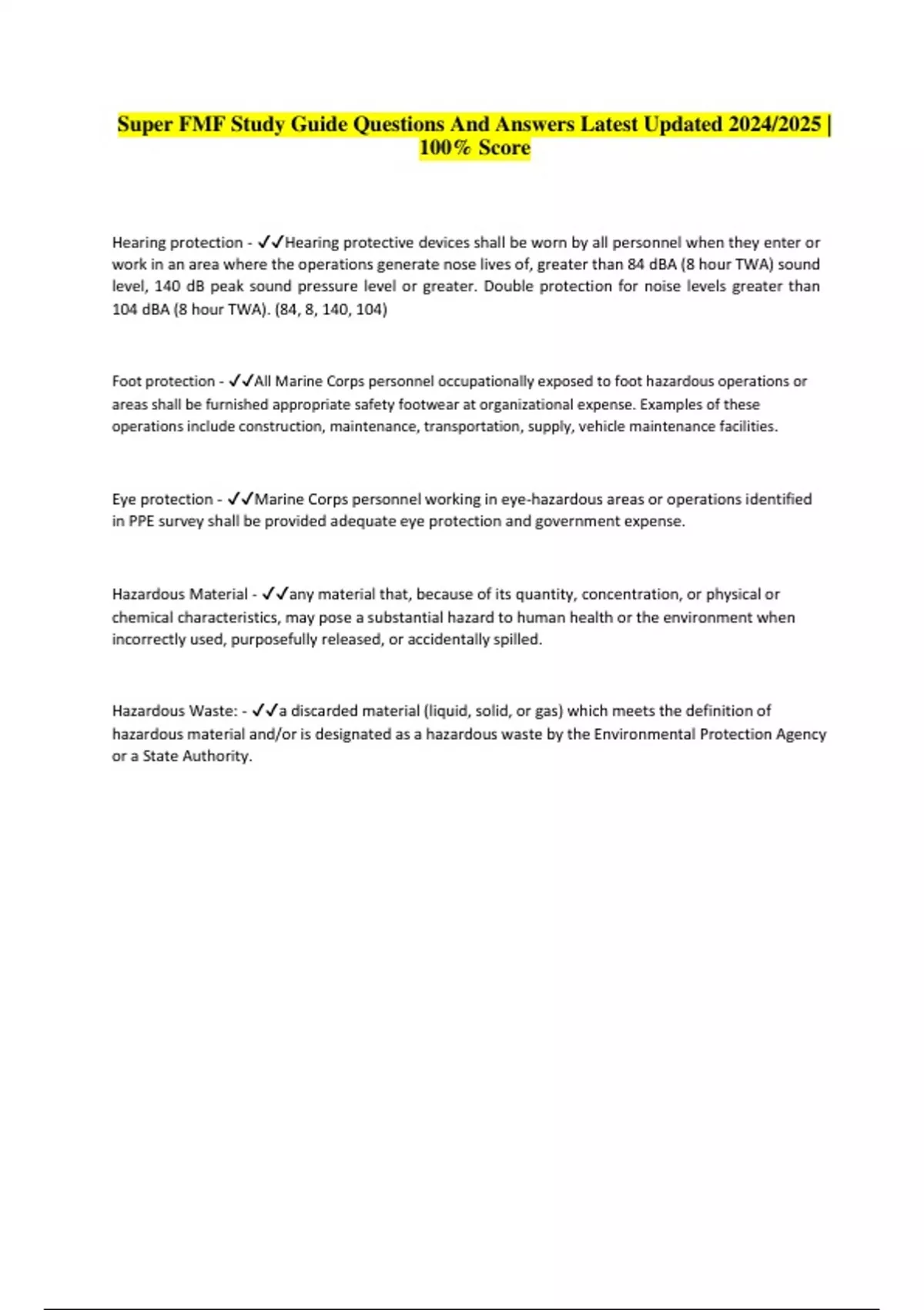 Foot protection - ✔✔All Marine Corps personnel occupationally exposed to foot hazardous operations or