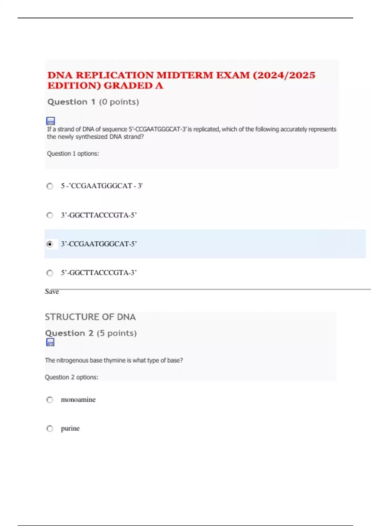 DNA REPLICATION MIDTERM EXAM ( EDITION) GRADED A