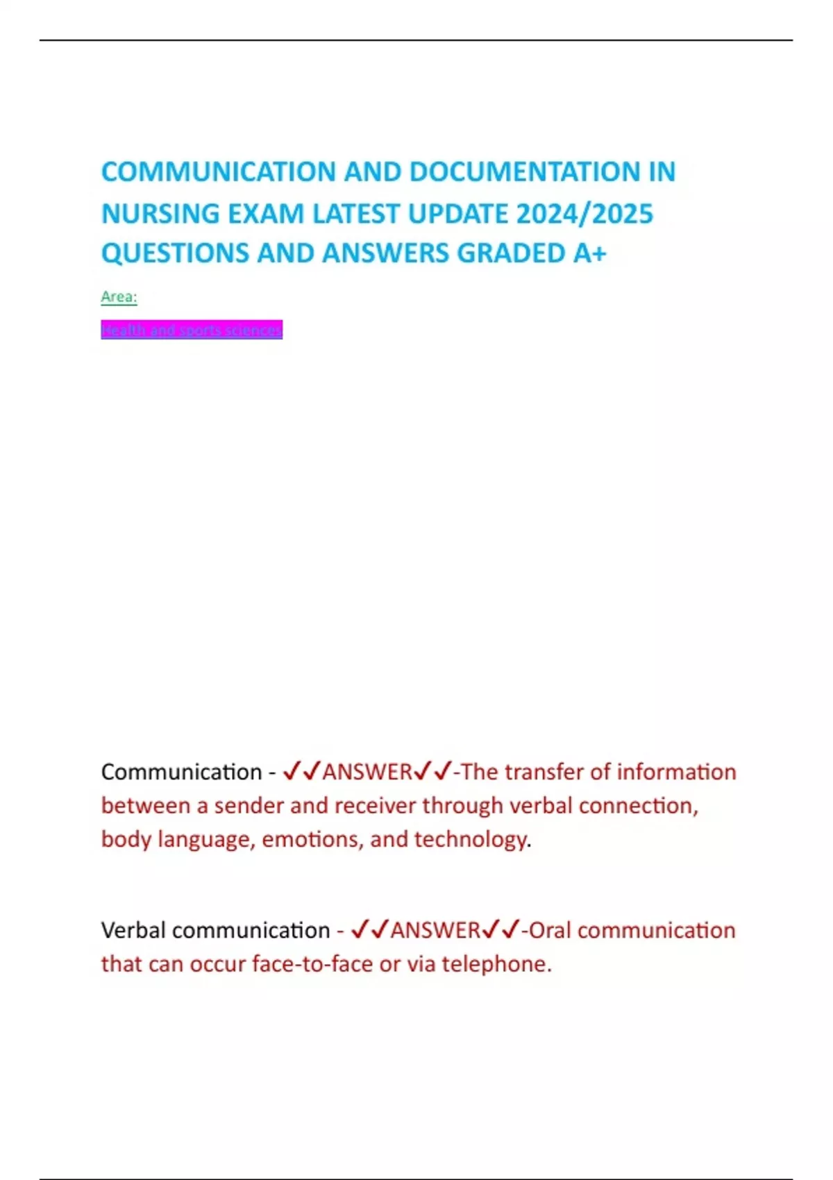 ,Nonverbal communication - ✔✔ANSWER✔✔-Communication