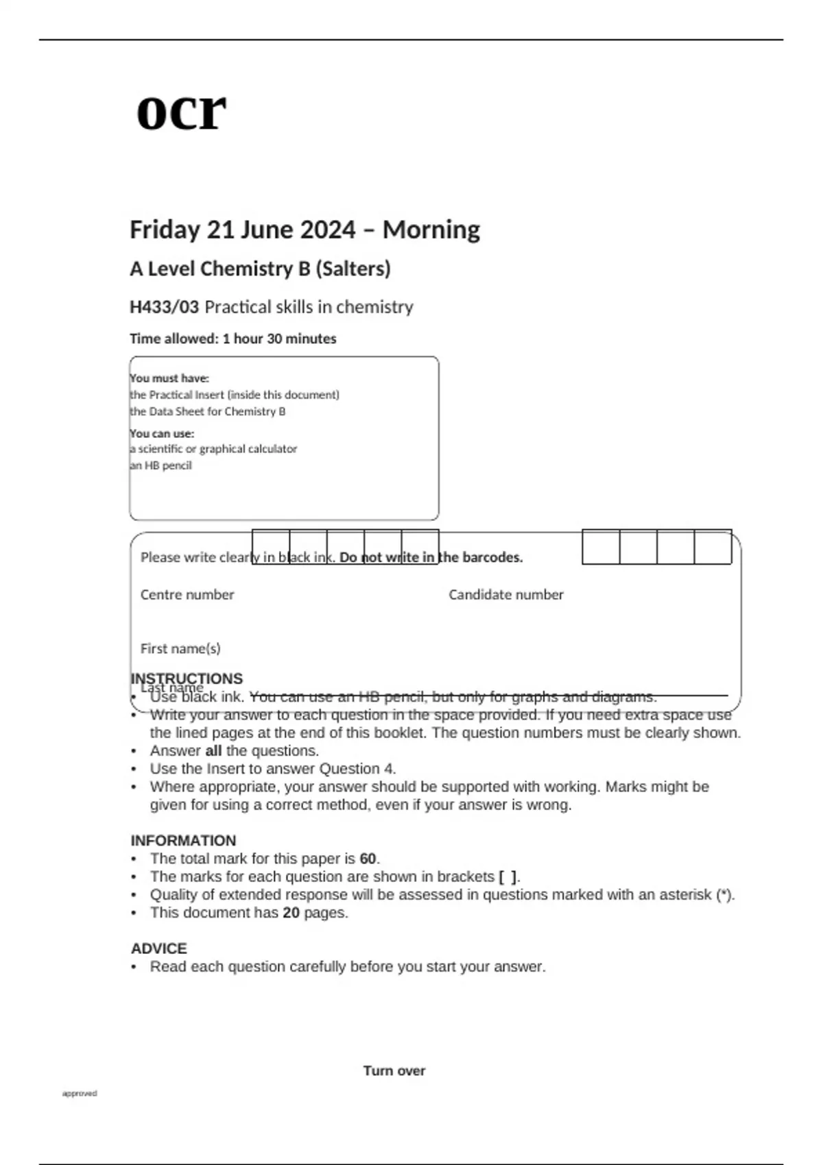 • Use black ink. You can use an HB pencil, but only for graphs and diagrams.