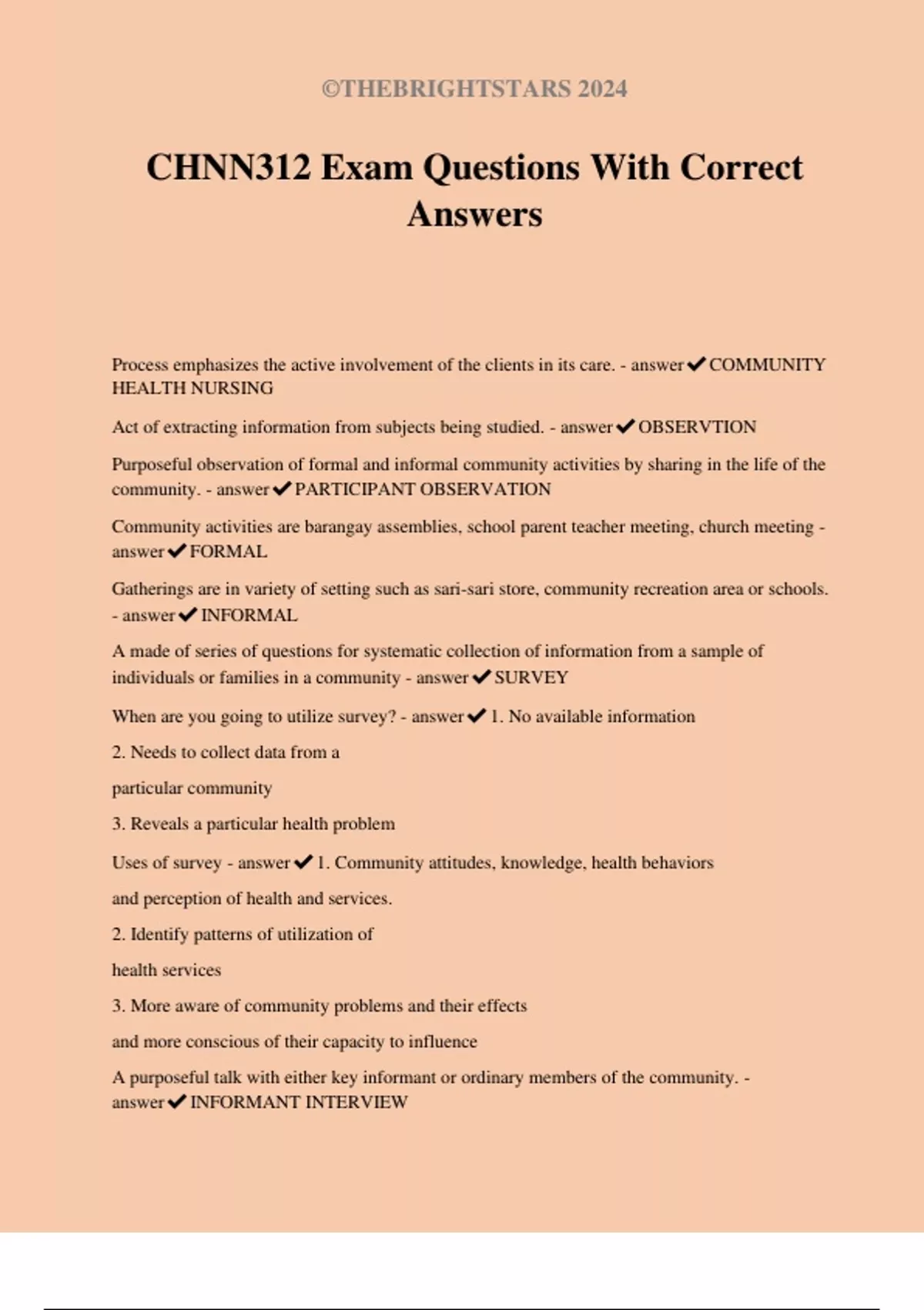 CHNN312 Exam Questions With Correct