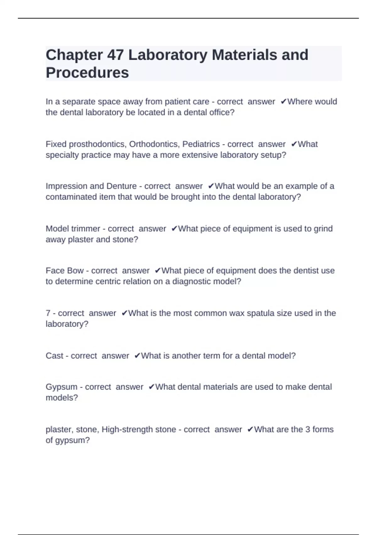 Gypsum - correct answer ✔What dental materials are used to make dental