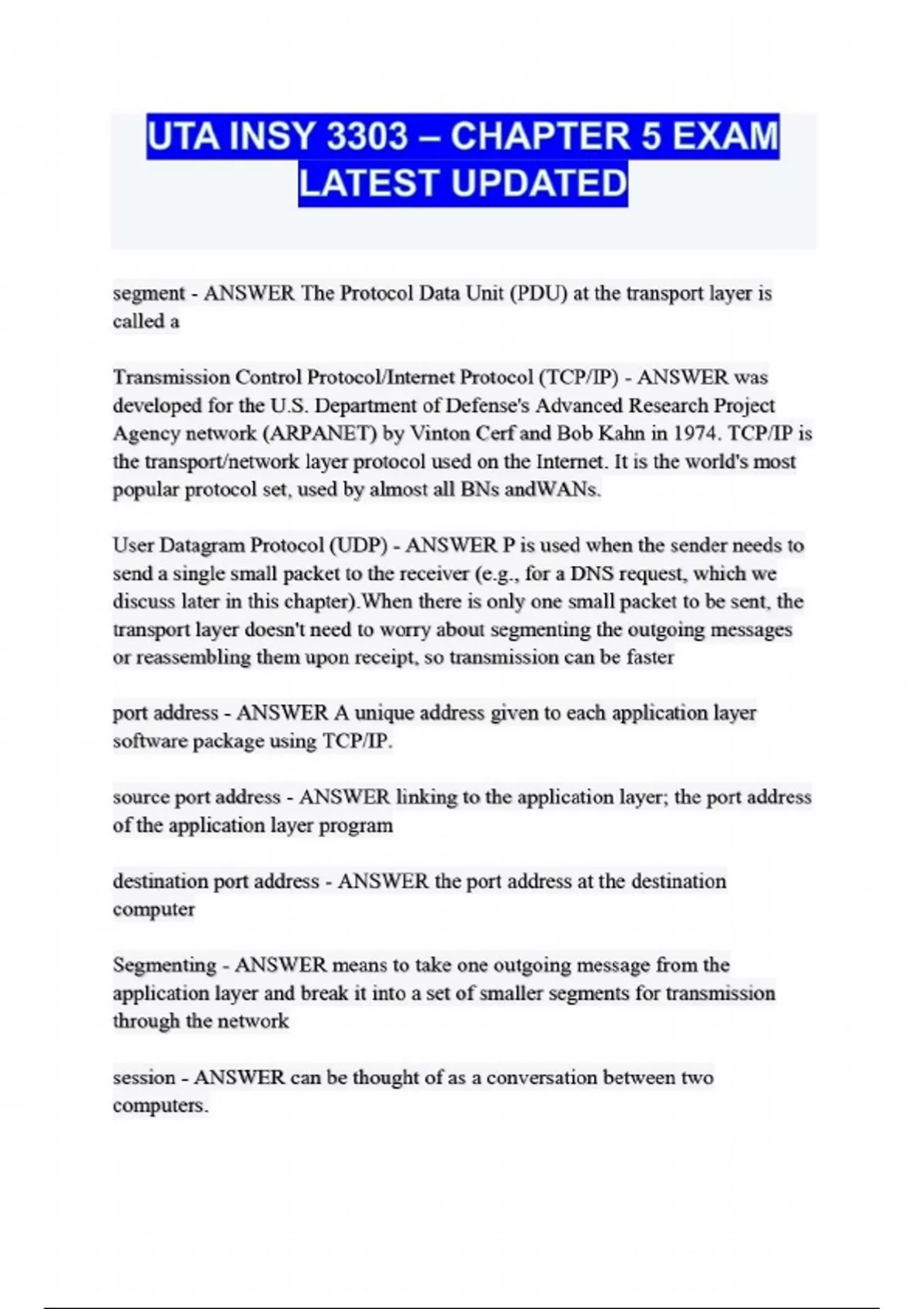 UTA INSY 3303 – CHAPTER 5 EXAM LATEST UPDATED...